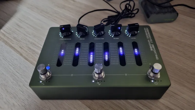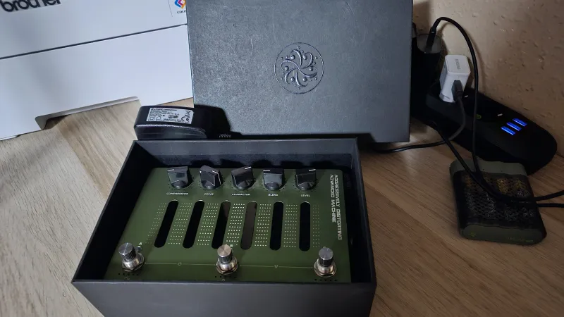 2 évet élt egy boardban, láb soha nem érte a pedált. Nem lett kapcsolgatva, tekergetve, csak 1x asztalon, míg beállítottam a designt.Tökéletesen újszerű állapotban van. Adok hozzá tápot is (eredetileg ugye az nem jár). Dobozával, kábelével, egyedül a matrica nincs a dobozban a gyári kitből. Adok mellé kb 200 cab ir-t (ampeg, darkglass, mesa, fender stb stb rengeteg mic típussal és pozícióval).