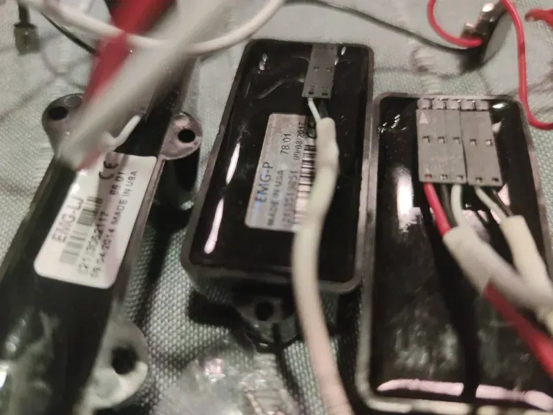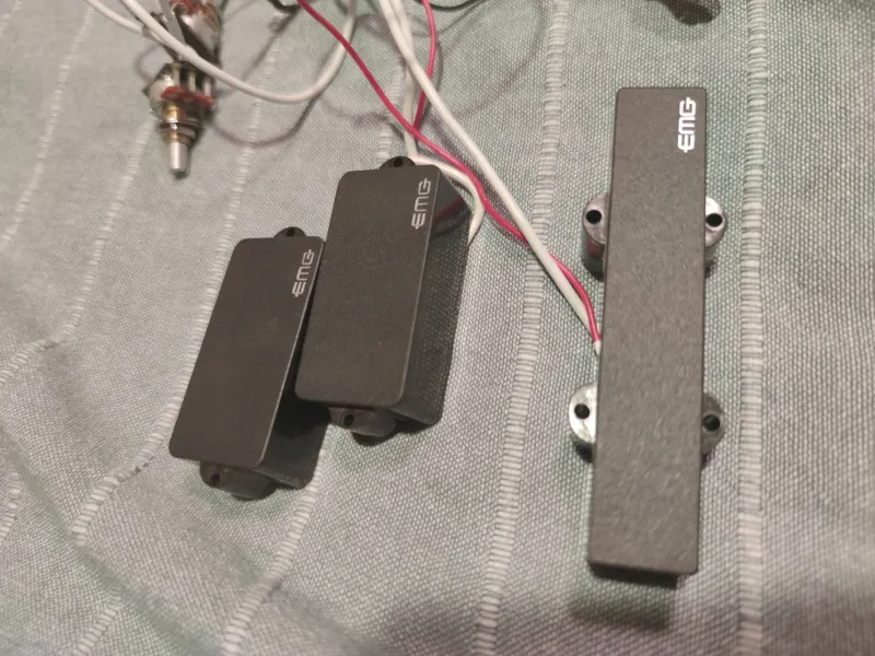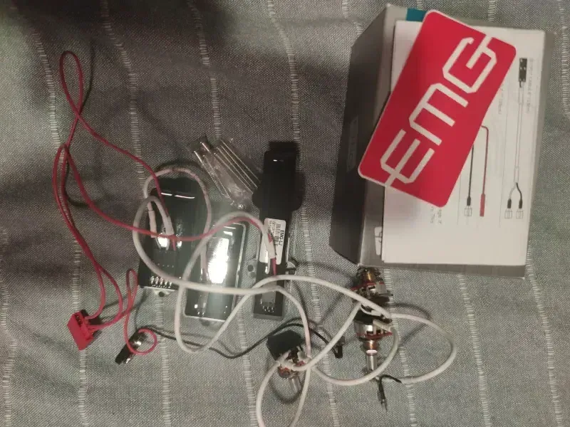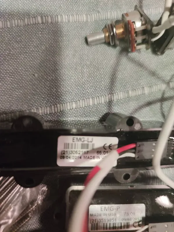 EMG PJ szett eladó a képen látható szép és jó állapotban, Quick Connect szerelékkel, 2 hangerő és 1 hangszín potival, 9V-os elem és jack aljzattal (utóbbi nincs a képen).Összeszerelt állapotban van, úgyhogy aki soha nem látott ilyet, az is tíz perc alatt beszereli.