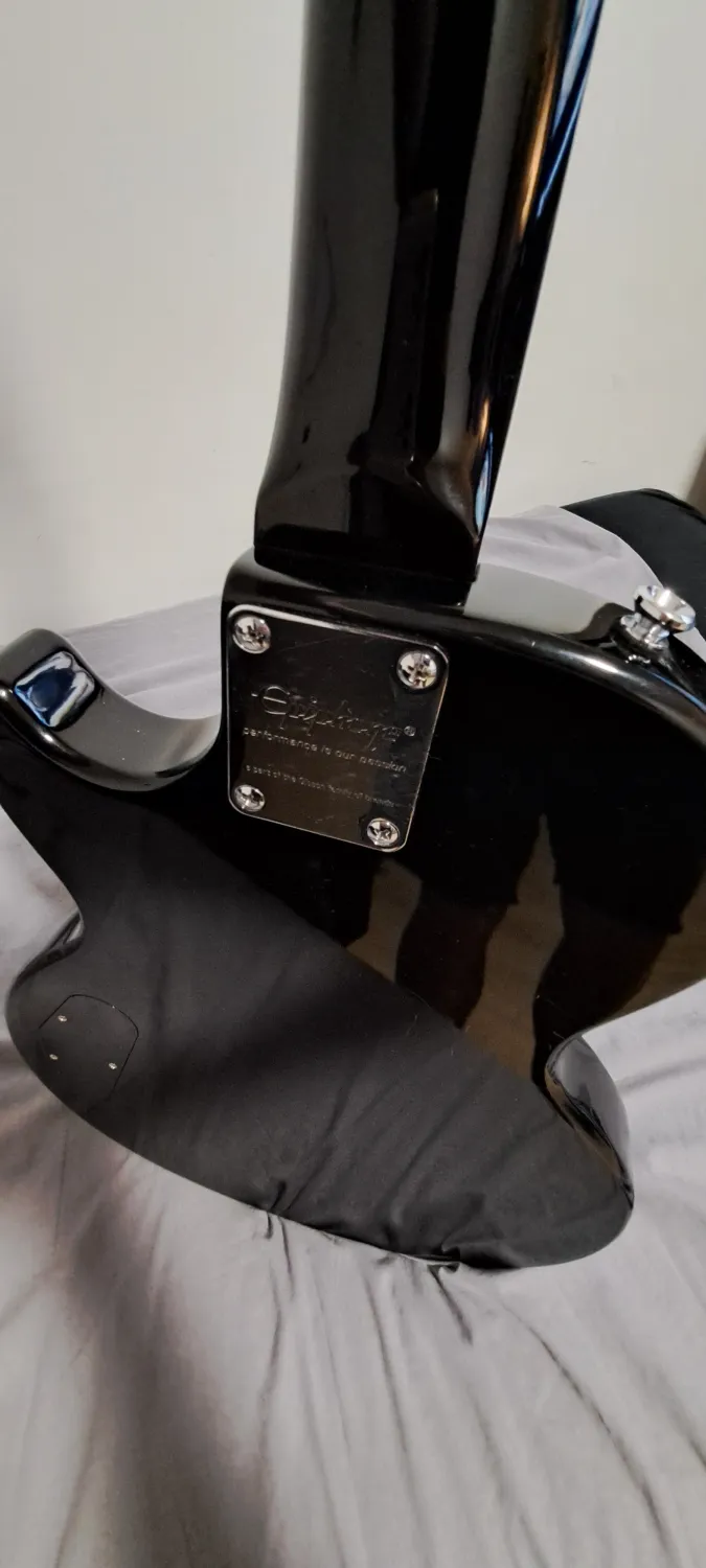 Just put new Wilkinson pickups, new bridge and had it fret leveled with my luthier. The pots are in great condition and the neck feels very nice. It is an excellent guitar. Unfortunately, I am a Fender guy and Les Pauls are not my cup of tea. This guitar is like a Gibson LP Studio Black and has new Elixir 10`s..The dark rosewood neck makes it better than most you can find now, and this guy is not too heavy. Call me, try it, get it..Reseña relacionada