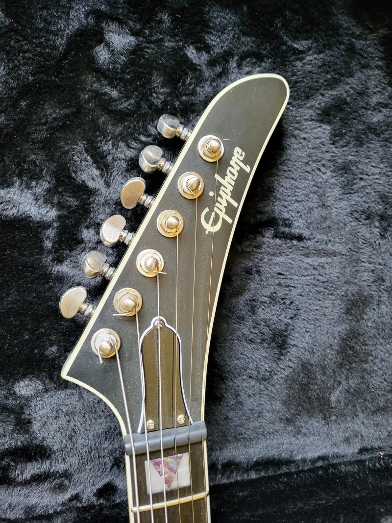 Eladó Epiphone Extura Prophecy Purple Tiger gitár kemény tokkal.A gitár tökéletes állapotnak örvend eltekintve a hátoldalán apró felületi kötelező övcsat karcoktól (abszolút nem feltűnő). Bundok is tökéletes állapotban. Különleges szín már nem kapható, élőben még jobban néz ki. (Hátoldalon a szerelő lemezen még rajt van a gyári fólia az csillog a képen) Elixir húrokkal húrozva...