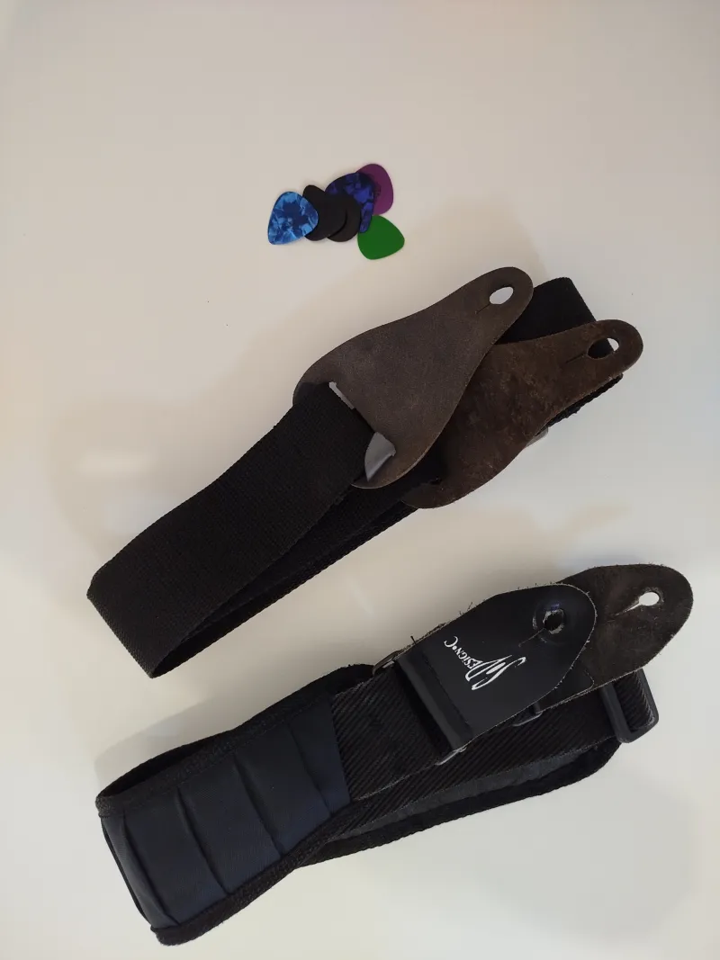 Jár hozzá egy állvány, egy puha tok, illetve 2 heveder pengetőkkel. A tartozékok szintén használtak.