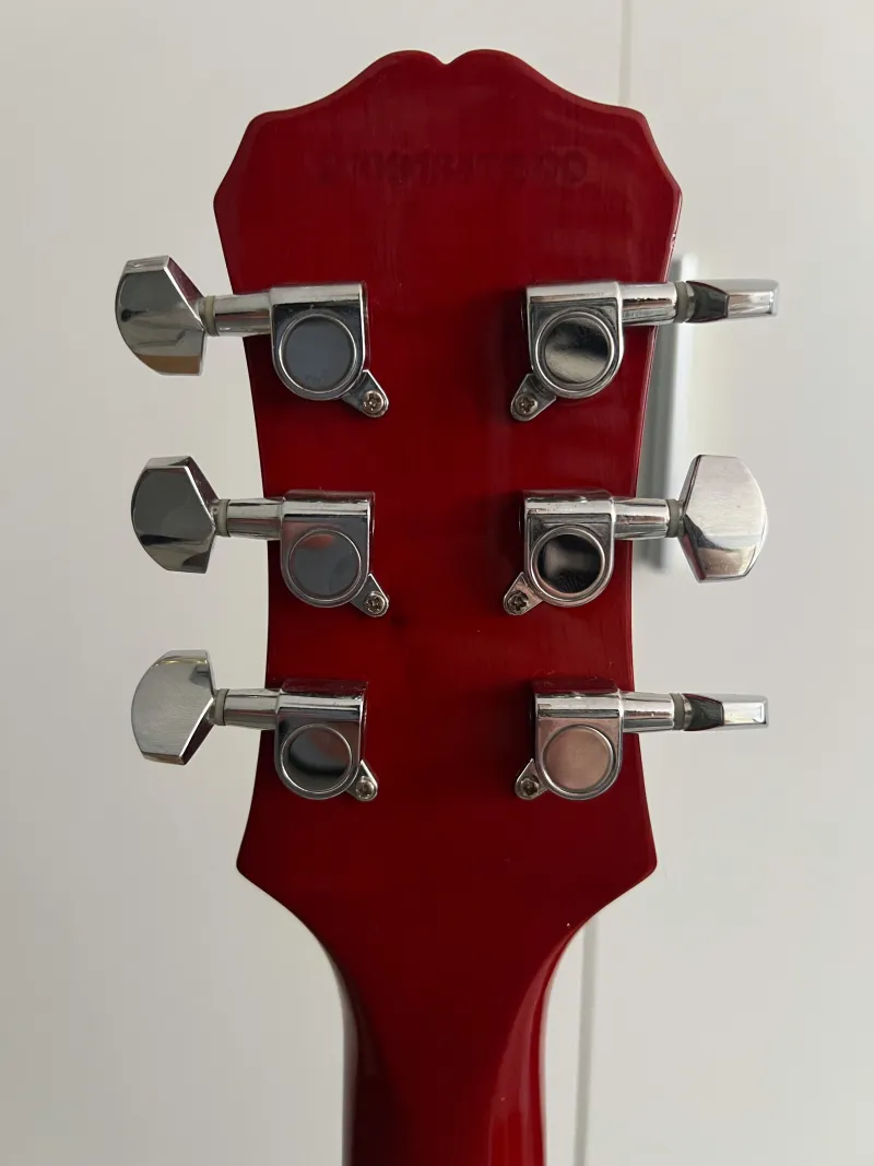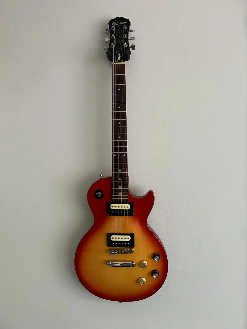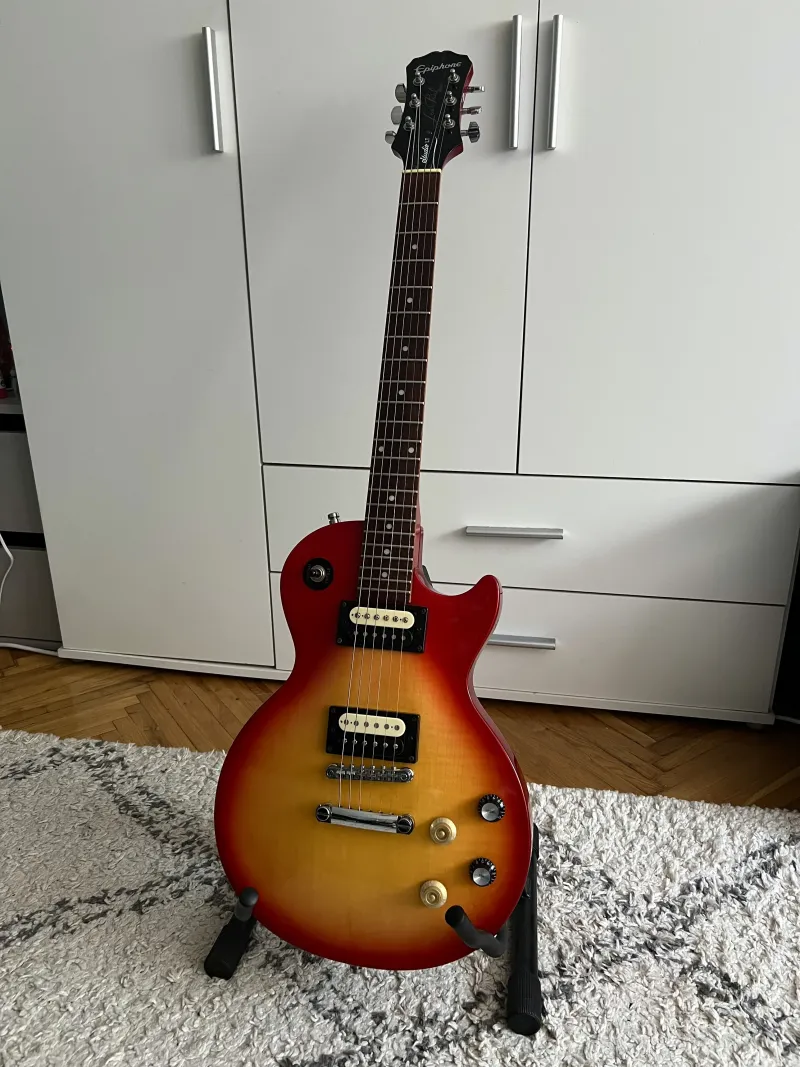 Eladó Epiphone Les Paul Studio E1 Heritage Cherry Sunburst! Az ár alkuképes! Hangszerésszel beállíttatott. Megvannak az eredeti fekete tónus és volume potik és még van egy pót arany is hozzá, ami egy Hangszerdiszkont Gibson Bell típusú potmétersapka - arany (2 ilyen van rajta is). Straplock hozzá jár, de hozzá adom az eredeti, hagyományos hevedertartóit is és még adok még egy krémszínű rhythm, treble gyűrűt is! Potenciométerek cserélve vannak jobb 2db Partsland VL2418H-A500K és 2db Partsland VL2418H-B500K-ra. Jack aljzat szintén cserélve jobbra, egy Partsland MJ3 Nickel-re. Egy hete cserélt Ernie Ball 2247 Stainless Hybrid 9-46-os húr szett van rajt. Esztétikailag minden teljesen rendben van vele, vigyázva volt rá, tokban volt tartva, talán a használatból eredendően 1-2 karc van itt-ott. Más típusú gitárra való váltás miatt szeretnék túladni rajt. Sorozatszám a képen látható!