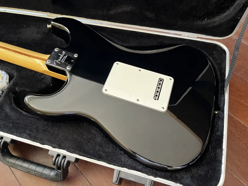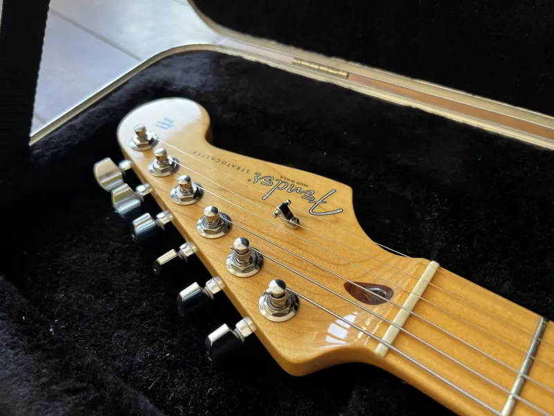 Eladó a képeken is látható nagyon szép állapotban lévő 2008-as Fender - American Standard Stratocaster (Made in USA). Az eredeti hangszedők ˝Fender Pure Vintage 65˝ szettre cserélve (ennek ára önmagában körülbelül 70e Ft), valamint egy David Gilmour stílusú kábelezés is megvalósításra került, melynek köszönhetően a ˝nyak + híd˝ és ˝nyak + közép + híd˝ hangszedő kombinációk is lehetségesek.A hangszerhez járnak eredeti papírjai, case candy-k és az eredeti kemény tokja is.