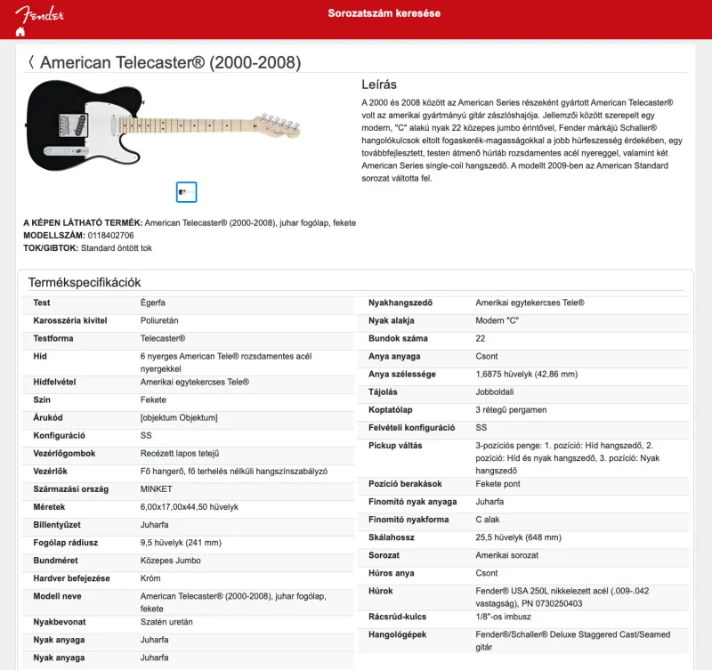 Eladó a képeken látható megkímélt állapotú 2005-ös, 20 éves Fender American Telecaster. Minden rendben van vele, 1 db 4x10 milliméteres felületi leütődés van a test alján/hátulján észrevehetetlen helyen. Nagyon szép állapotú, remek hangszer. Az eladás oka, hogy van egy másik, átalakított fekete Fender American Telecasterem. Ennek a példánynak mindene eredeti. Kipróbálható-átvehető Hatvanban vagy Gödöllőn.Reseña relacionada