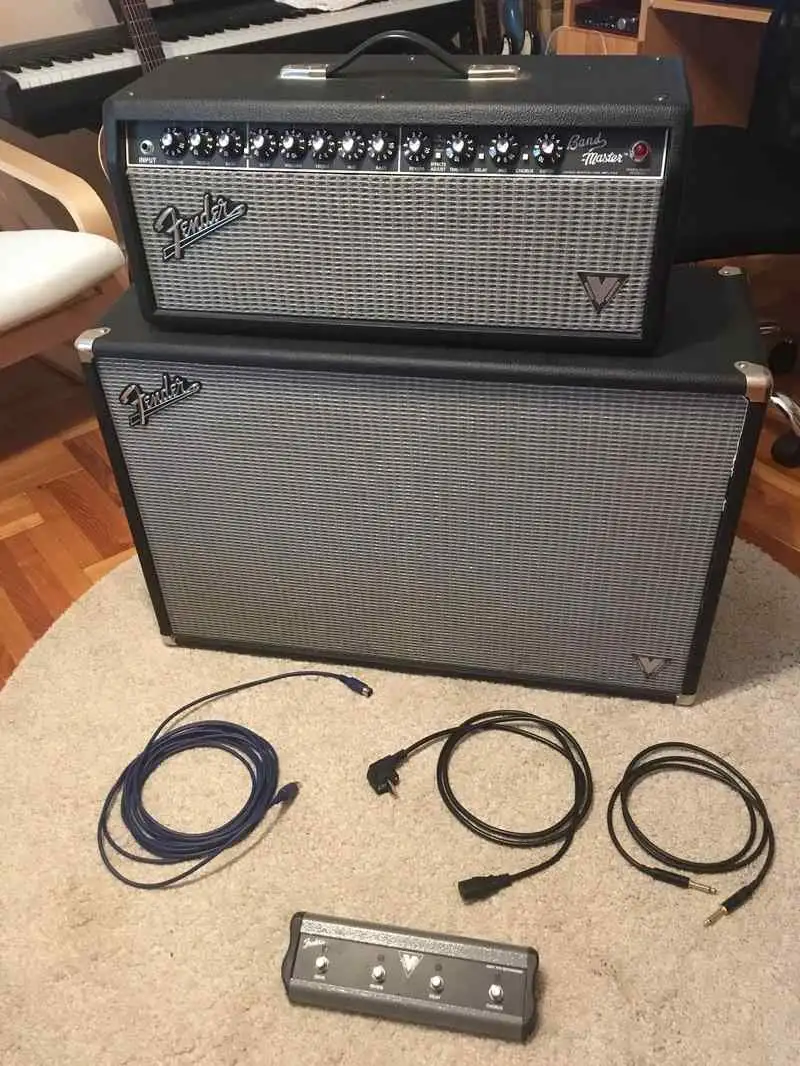huendeskesFender Bandmaster (vintage modificado) cabezal de amplificador de válvulas de 40 vatios + pantalla de 160 vatios. Hora de cambio de válvulas (Tube Amp Doctor) apenas usado, lo vendo por falta de uso. Válvulas: preamplificador 2x12AX7, etapa de potencia 2x6L6GC