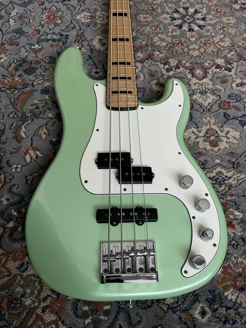 Eladó egy Fender Deluxe Special Precision Bass! Teljesen gyári, hibátlan állapot, egy igazán prémium hangszerről beszélünk: 3 sávos aktív elektronika, berakásos és bindingos nyak, Surf Green Metallic szín. A hangszer 2015-ös, de karcmentes, gyűjtői darab!