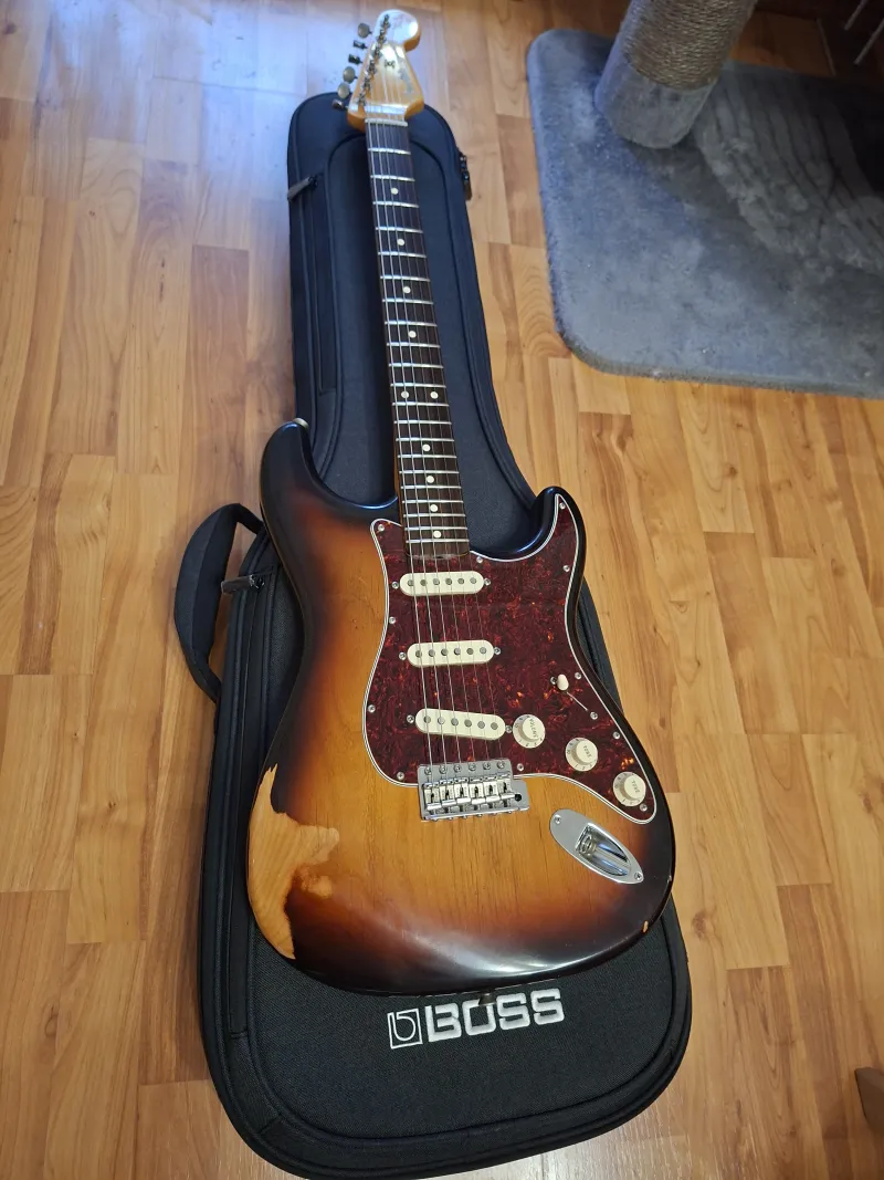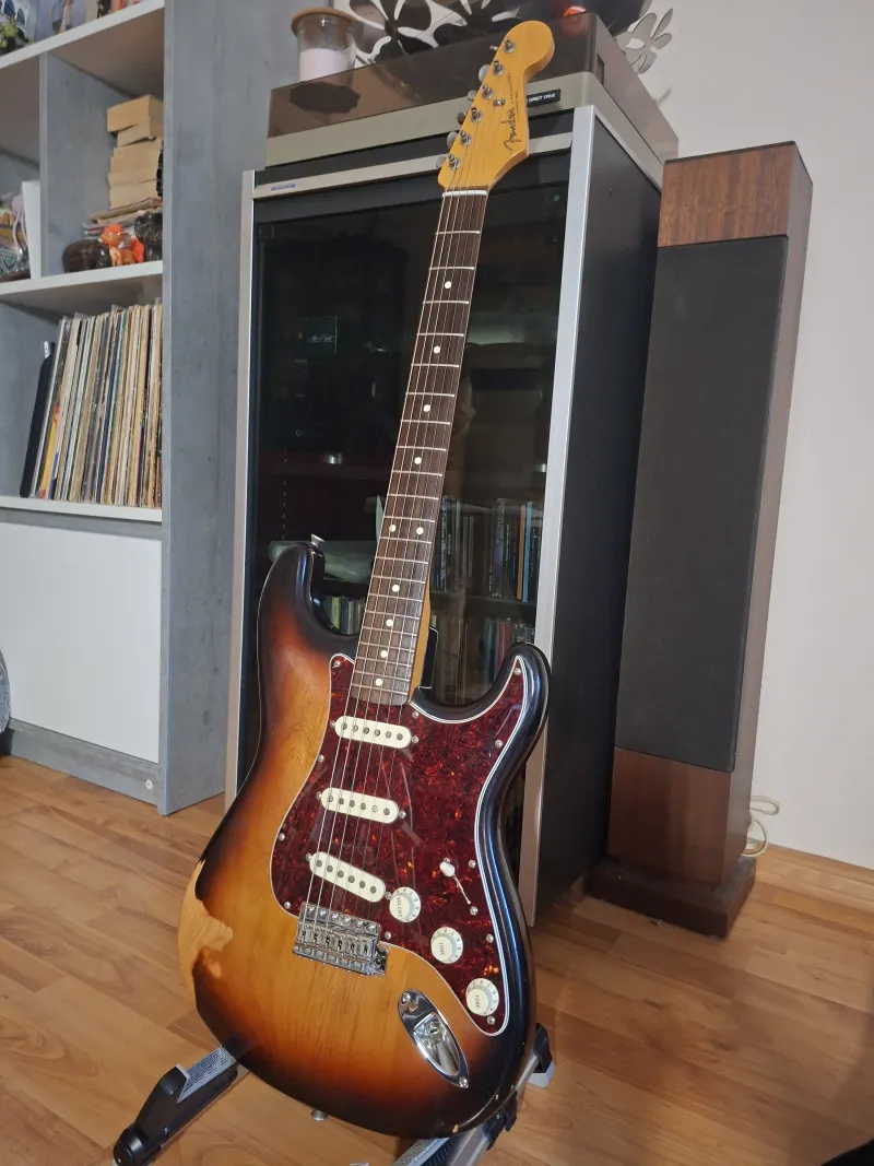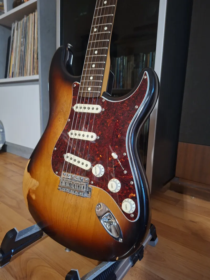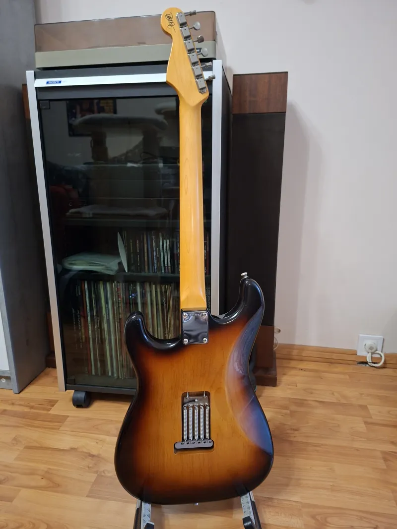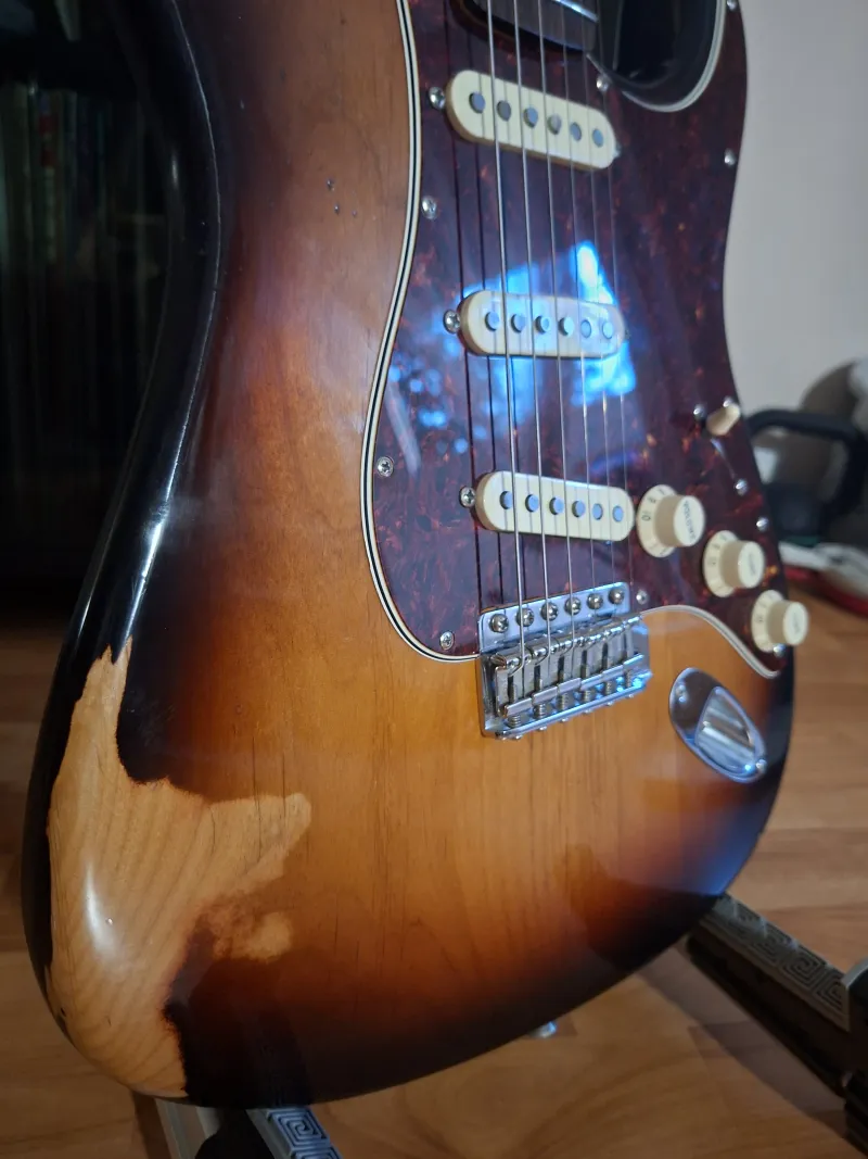 - A test eredetileg fehér volt de a vastag poly festés idővel hajlamos repedezni, ezért kapott egy full nitro festést de immár 3 tónusú sunburst-re izléses reliccel, német hangszerész végezte.