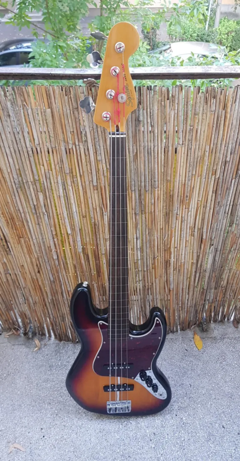 Squier Classic Vibe Fretless Jazz Bass 2019. Voltak gondok a pálcával, az imbusz kulcsnyílás nem tökéletes de működik. A fogólap síkolva és kikeményítve hangszerész álltal, Az üregek alu izével árnyékolva. Két nyakrögzítő csavar cserés lesz, mer kikopott a feje, de tökéletesen stabilan fogja a nyakat.