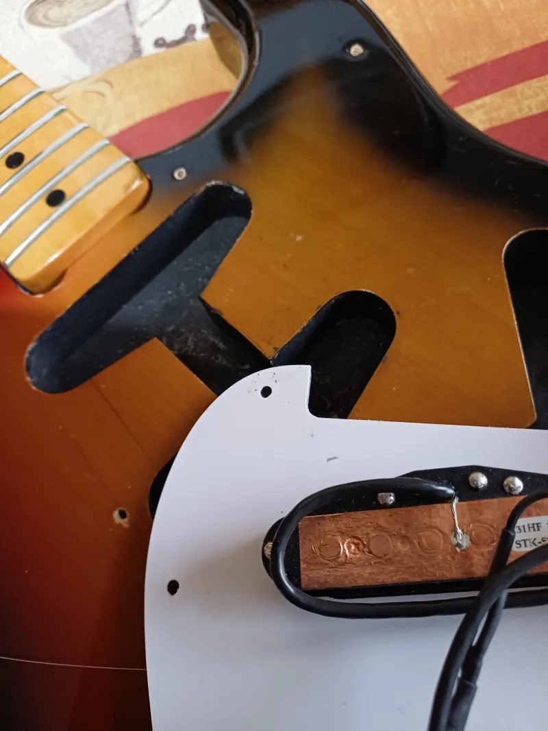 Öreg Fender Strató, kifejezetten vékony, kényelmes nyakkal, tokkal és vonóval eladóvá vált. A nyakon van egy profin bedugózott furat, ezért ennyi az ára. Extra Jumbó, alig használt bundokkal, elől és hátul YJM Seymour Duncan, középen Kinman hangszedők. Baráti, 3,5 Kg súly!Reseña relacionada