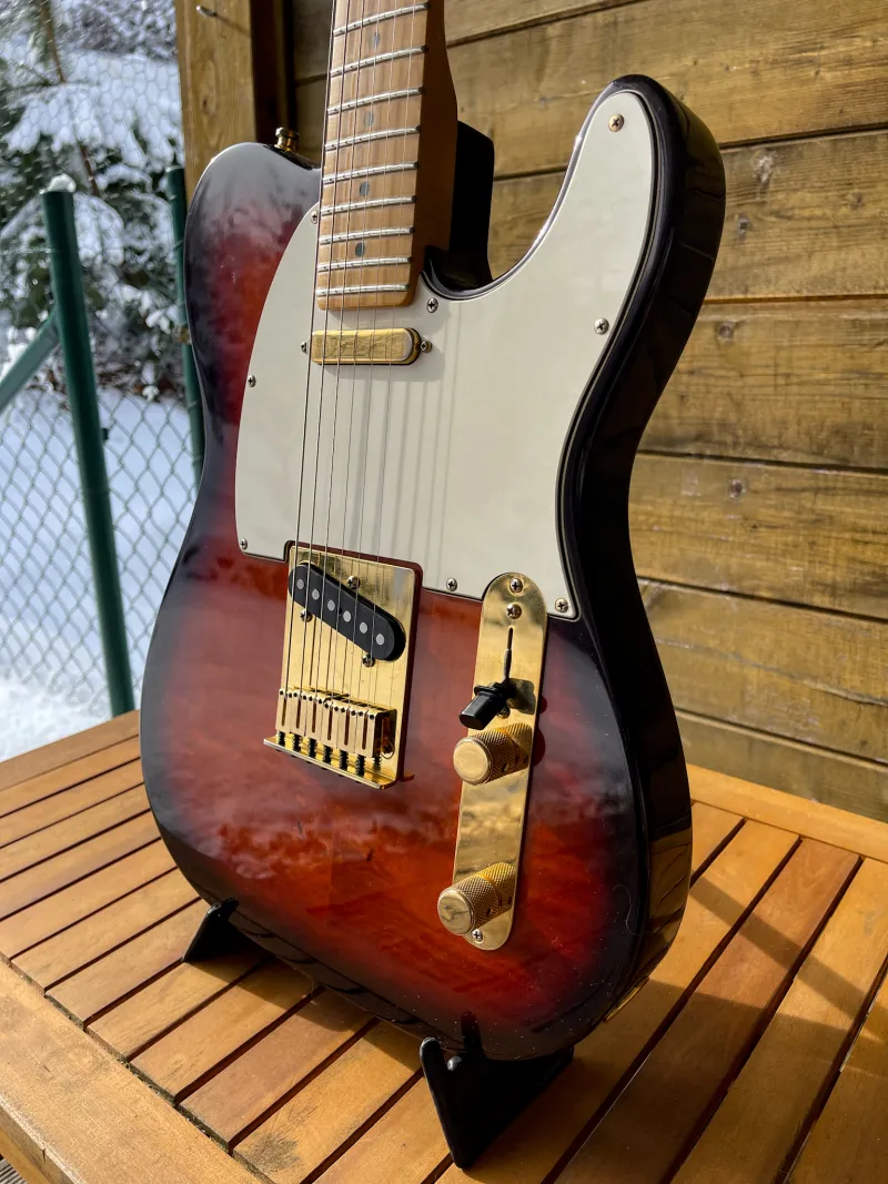 I`m selling this 1996 rare American 50th anniversary model (1946-1996 years of excellence), Limited Edition of 1250 pieces, this one is number 362. Alder body, very nice flame maple top and back, maple neck with modern C profile, 9,5`` fretboard radius, Fender vintage 50`s pickups, gold hardware, original hardcase, documents, tags and original strap. The guitar is great-sounding, set up and ready to play, all original no modifications or repairs. Shipping from the Czech Republic via courier, tracked and insuredEnvío