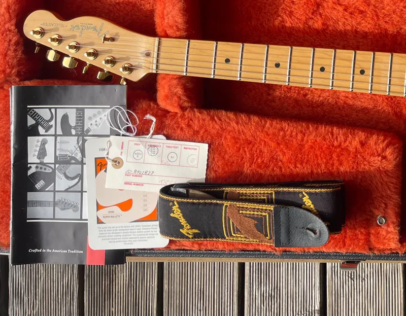 I`m selling this 1996 rare American 50th anniversary model (1946-1996 years of excellence), Limited Edition of 1250 pieces, this one is number 362. Alder body, very nice flame maple top and back, maple neck with modern C profile, 9,5`` fretboard radius, Fender vintage 50`s pickups, gold hardware, original hardcase, documents, tags and original strap. The guitar is great-sounding, set up and ready to play, all original no modifications or repairs. Shipping from the Czech Republic via courier, tracked and insuredEnvío