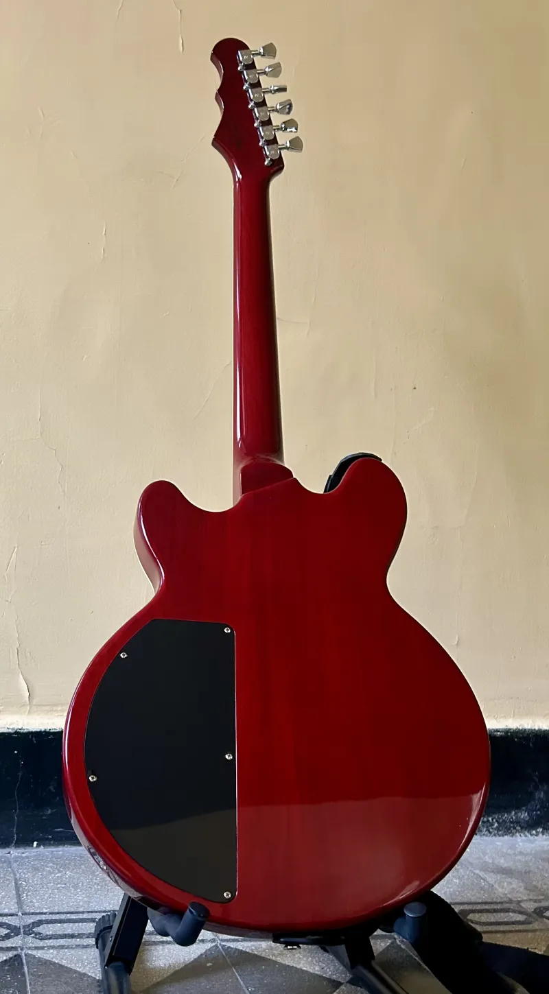A gitár semi-hollow felépítésű, kamrázott mahagóni testtel és faragott juhar tetővel, ami gazdag, rezonáns hangzást biztosít. A mahagóni nyak és rózsafa fogólap kényelmes játékérzetet nyújt, a Grover hangolókulcsok és a Wilkinson hardver pedig megbízható stabilitást garantálnak.