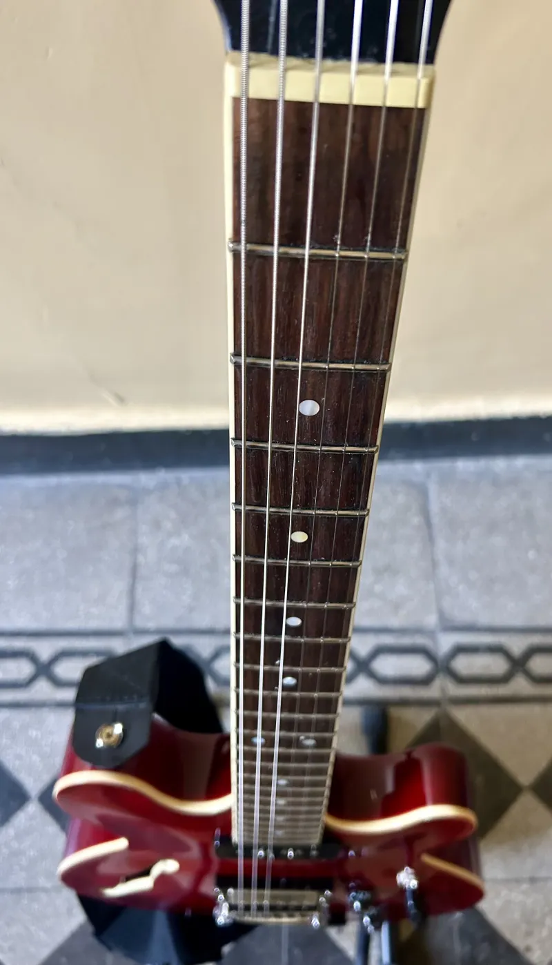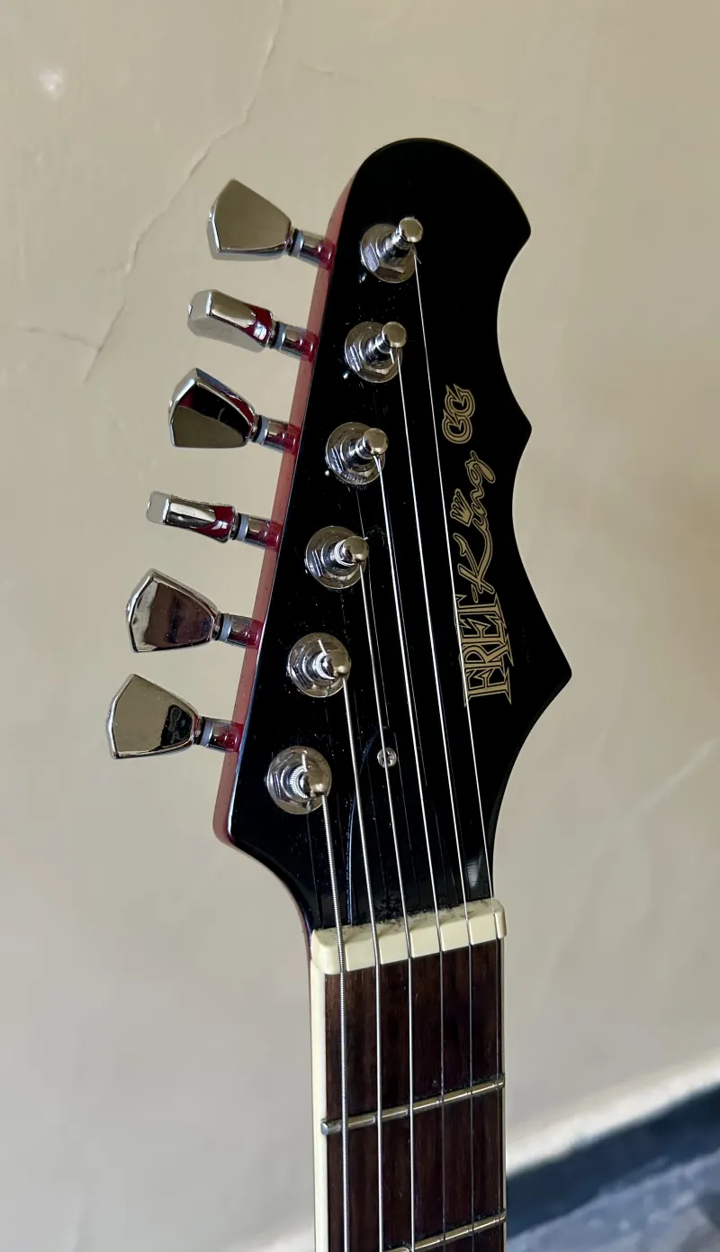 Eladó egy 2012-es Fret-King Elise GG Black Label Gordon Giltrap signature félakusztikus gitár, cherry red kivitelben. A hangszer kifogástalan állapotban van, gondosan karbantartva, komoly gyűjteményből.A modell különlegessége a háromforrású hangrendszer: egy Fret-King WP90SK P-90 jellegű single coil a nyaknál, egy Fret-King WVC humbucker a hídi pozícióban, valamint egy beépített piezo pickup a húrlábban. Ezek a jelek keverhetők, így az elektromos és akusztikus hangszínek széles skáláját kínálja, stúdióban és színpadon egyaránt.