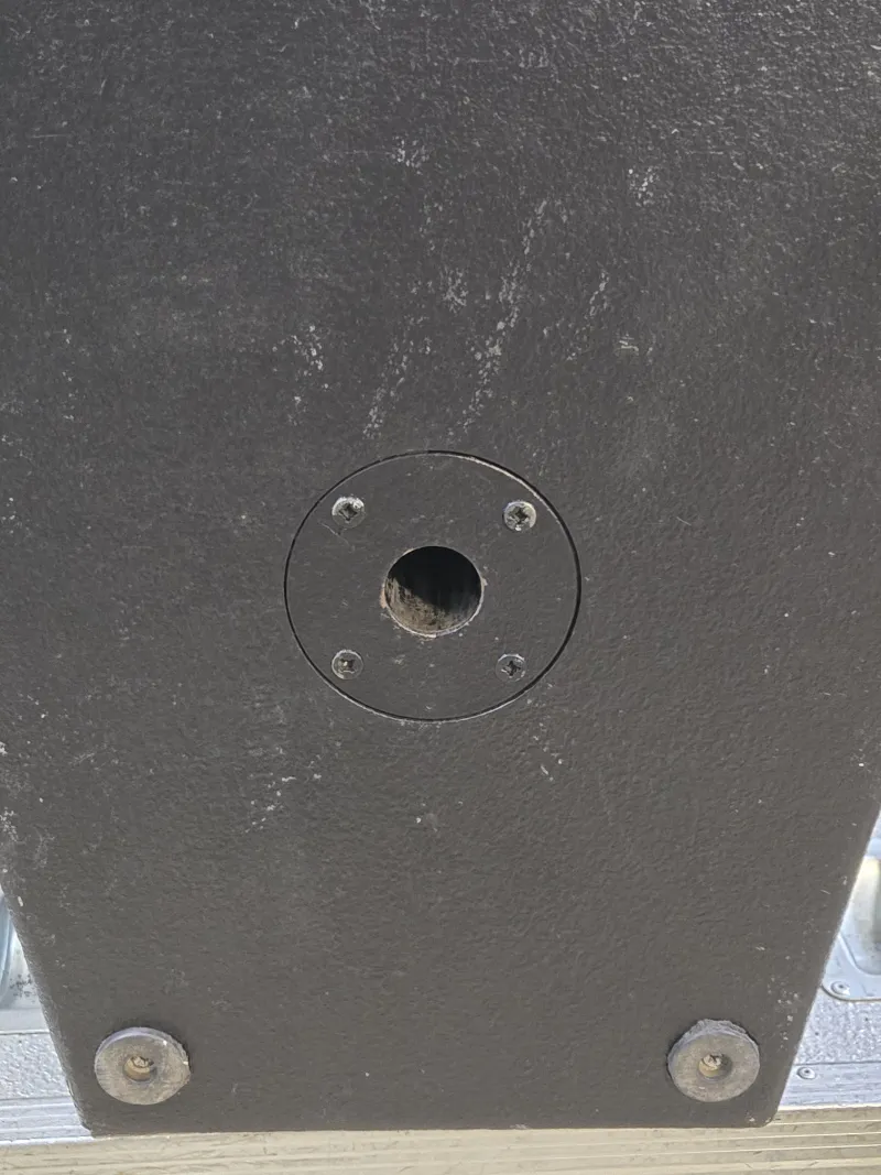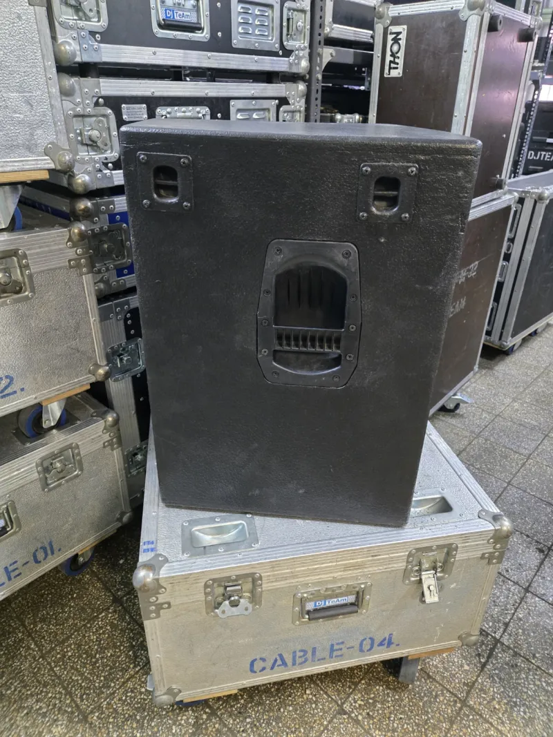 Oldalában lévő függesztő szemek gyártáskor lettek kérve, tehát így készült. A gyári számai alapján lekérdezhető, de minden hangszóró, és hangváltó eredeti.