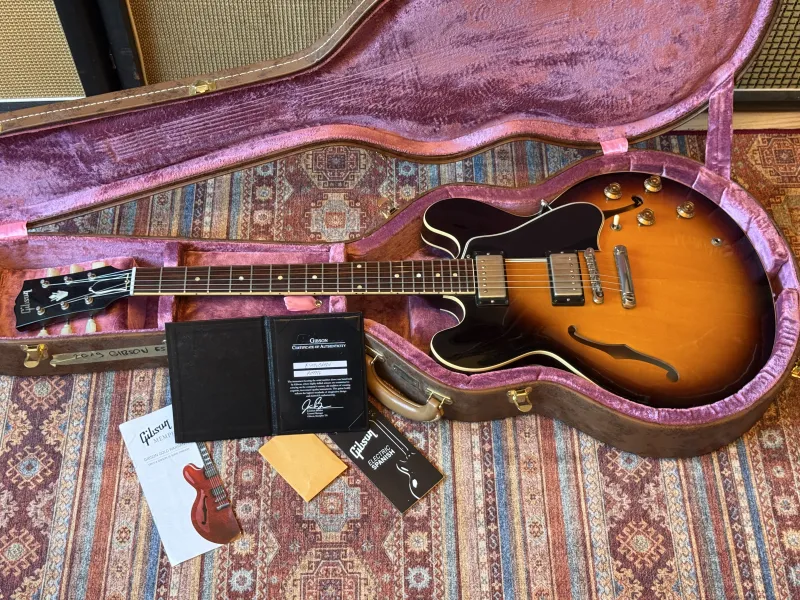 🎸 Eladó: 2019 Gibson ES-335 ’59 Historic 🎸Gyűjteményből eladó egy 2019-es Gibson ES-335 ’59 Memphis Historic Reissue, a Custom Shop egyik legjobban sikerült újrakiadása. A hangszer a klasszikus 1959-es specifikációkat követi, mind megjelenésében, mind hangzásában - MHS II (Memphis Historic Spec) hangszedőkkel, kézzel huzalozott elektronikával és precízen kidolgozott faanyagokkal. Ez a modell a modern Gibson kínálat egyik legautentikusabb félüreges hangszere.