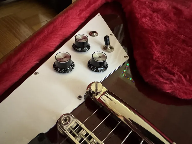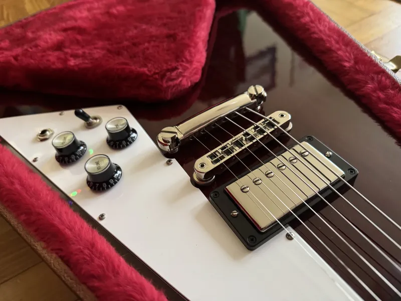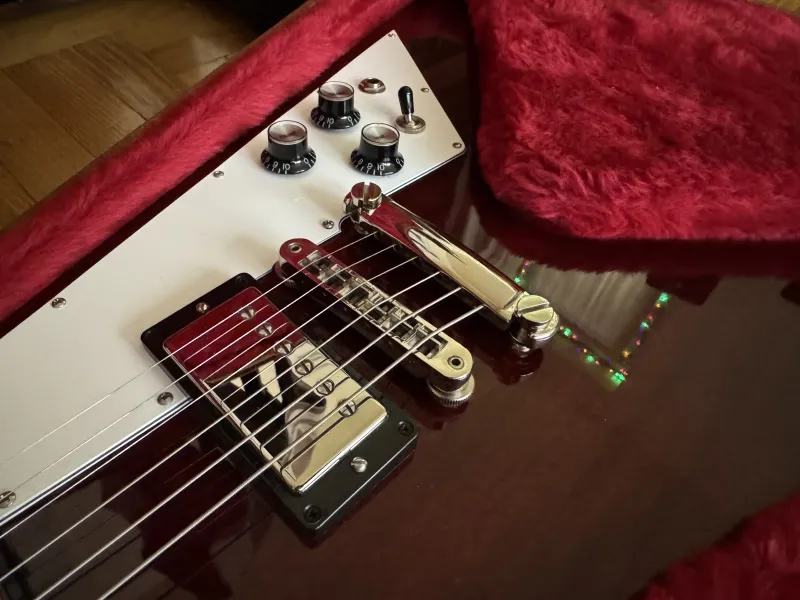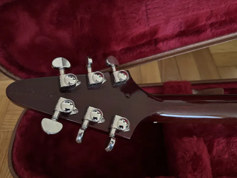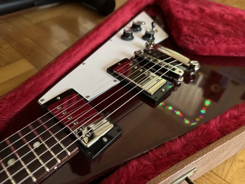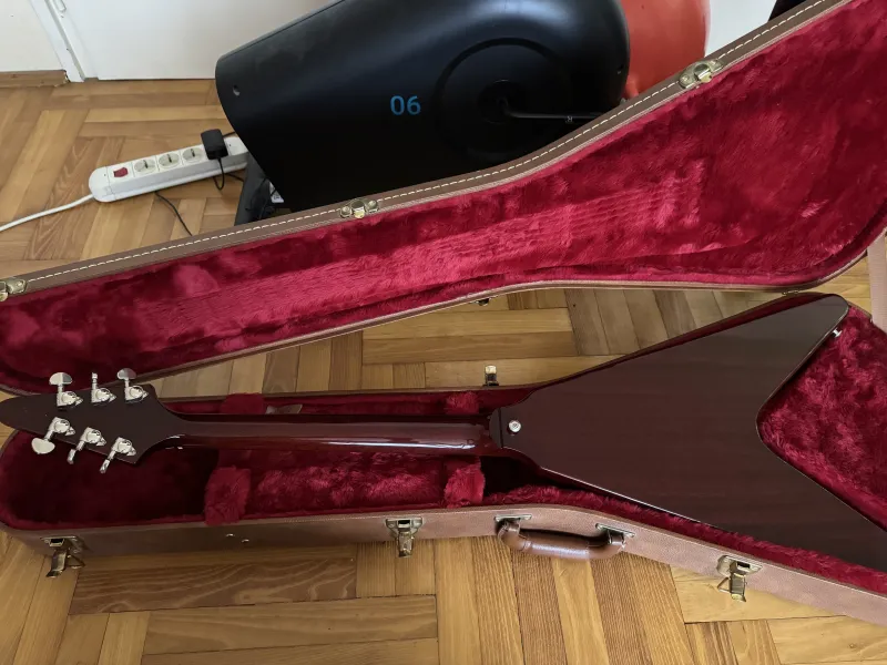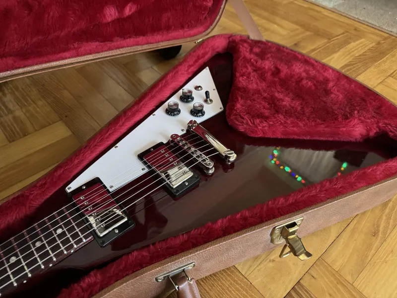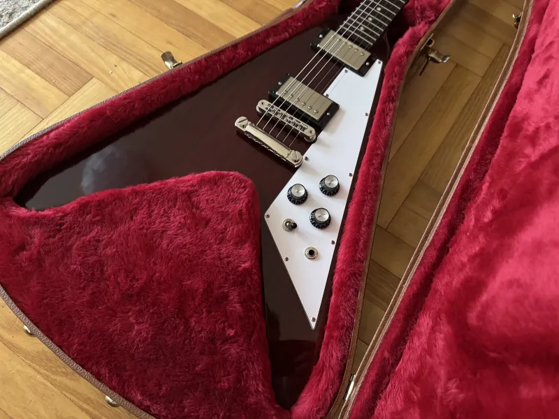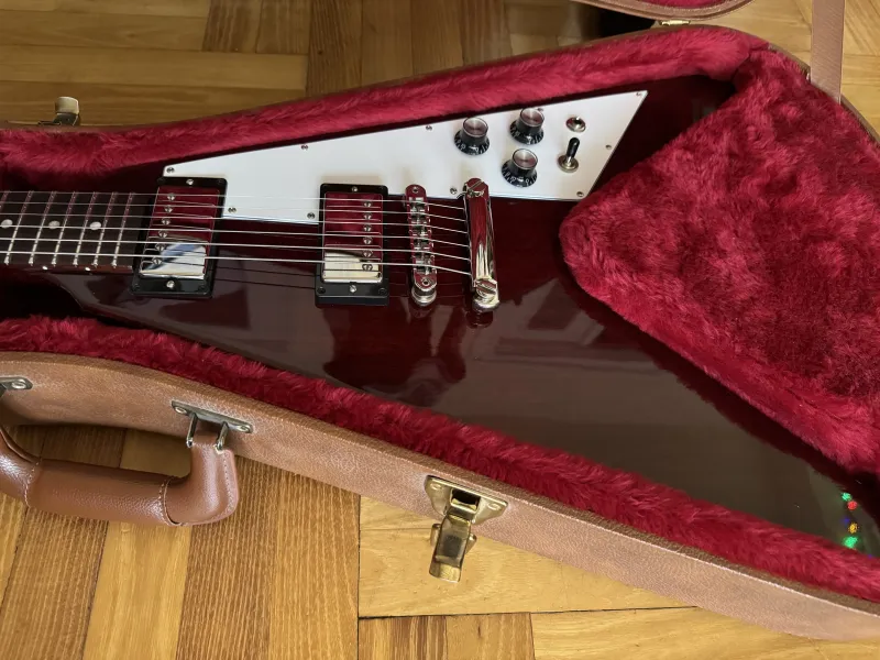 Eladó nagyon szép állapotú, leverődés mentes 2018-as Gibson Flying V aged Cherry színben, gyári keménytokjával, minden papírjával. Gibson Burstbucker BB2/BB3 pickupokkal.Kp/Utalás/HUF/EUR/GBP jöhet.