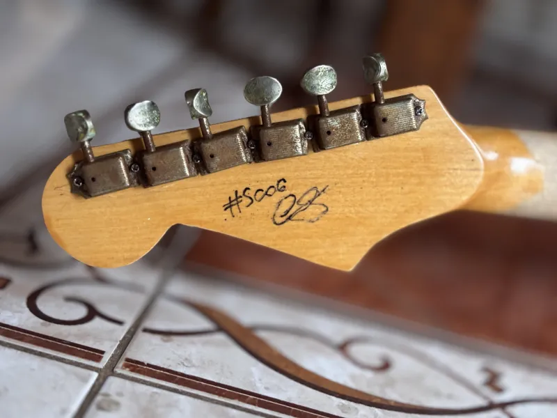 Megkérdeztem a kislányom milyen legyen a következő gitár amit készítek, majd egyből rávágta, hogy rózsaszín, úgyhogy itt van egy 1960-as shell pink Stratocaster. Éger test, juhar nyak, rózsafa fogólap, medium jumbo bundok, heavy relic nitro lakk, kézzel tekercselt alnico 5 hangszedők (5,8-6,0-6,2k).Kecskeméten megtekinthető