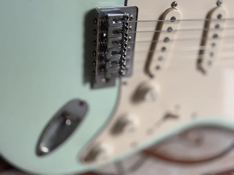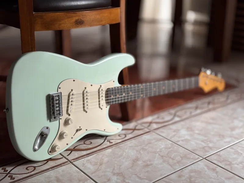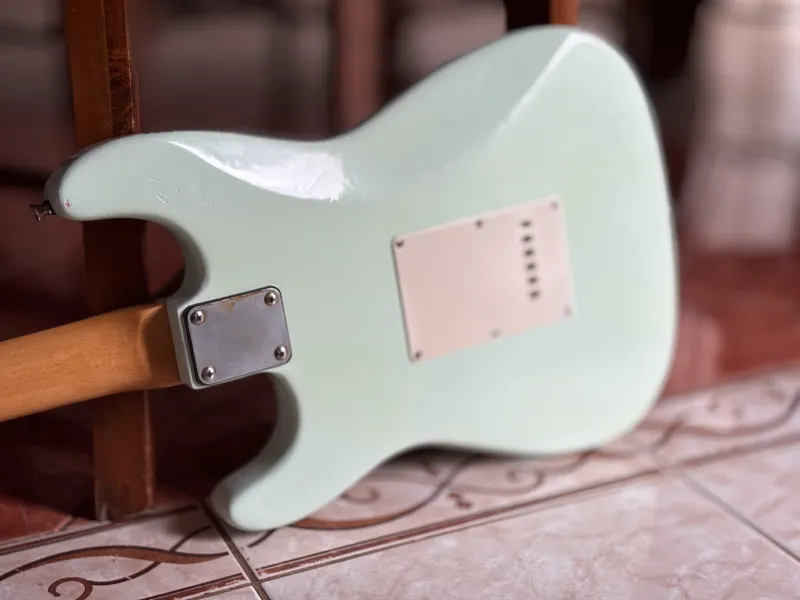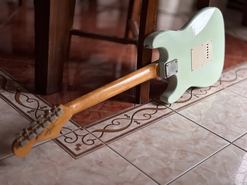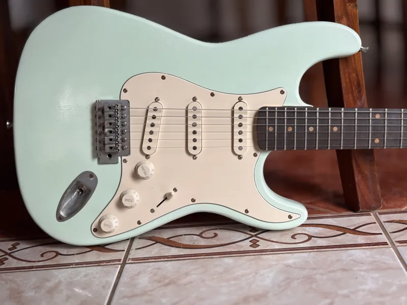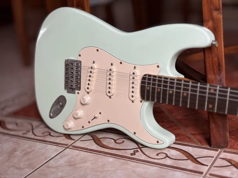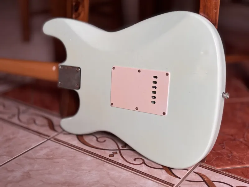 Éger test, jávor nyak, rózsafa fogólap, surf green nitro lakk, kézzel tekercselt, alnico5 hangszedők. Enyhén öregített lakkozás illetve szerelvények. Ideális a minimális relicet kedvelőknek. Medium vintage bundok, C nyakprofil. Nagyon kényelmes nyaka van, remekül játszható hangszer. Sorszámozott darab. Kecskeméten kipróbálható.Reseña relacionada