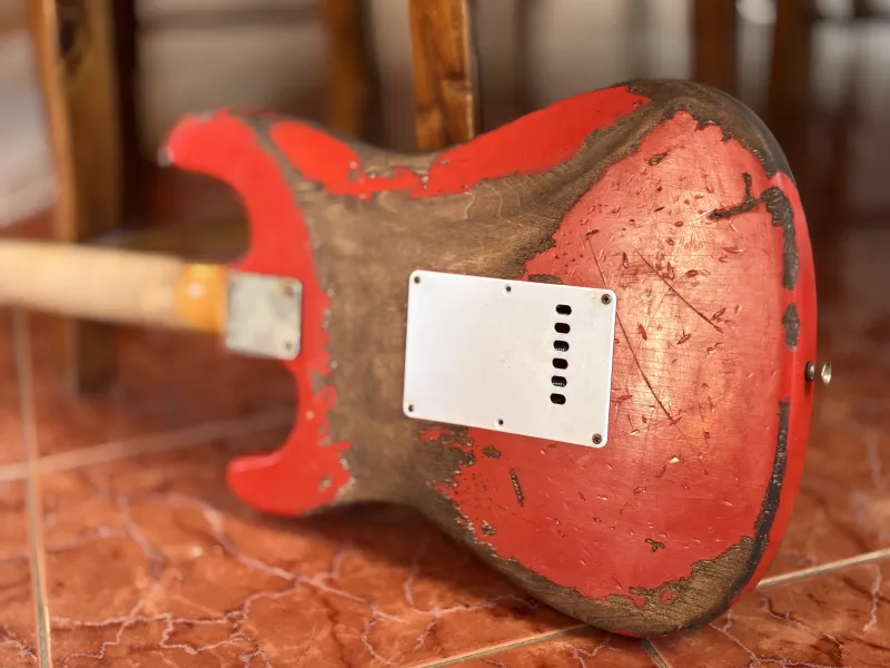 C nyakprofil, mediurm-vintage bundok. Kézzel öregített Nitro lakkozás. A hangszer minden csavarja korhűen öregítve van. Sorszámozott darab, eredetiséget igazoló plakettal. Egy kinézetben, hangban és játékélményben is kiváló lenyomata az gitározás hőskorának.