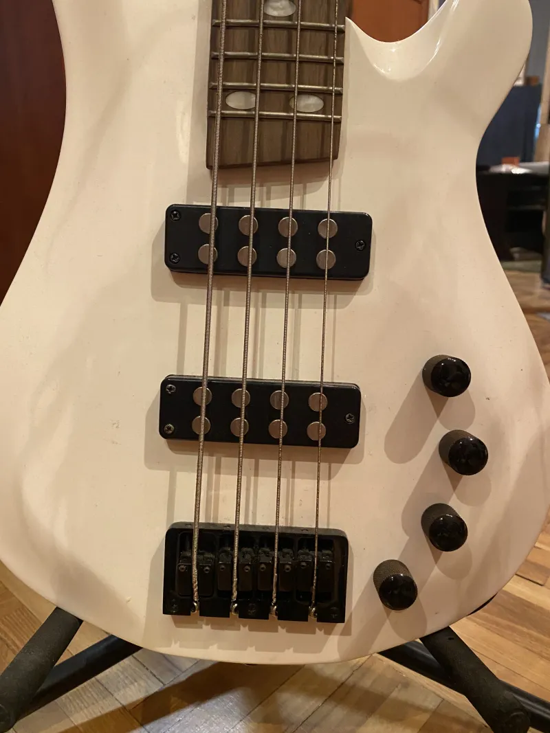 Eladó sorba került egy Harley Benton B-450 White Progressive Series basszusgitárom.Párszor használt gitár, csak is terembe pár próba alkalmáig.