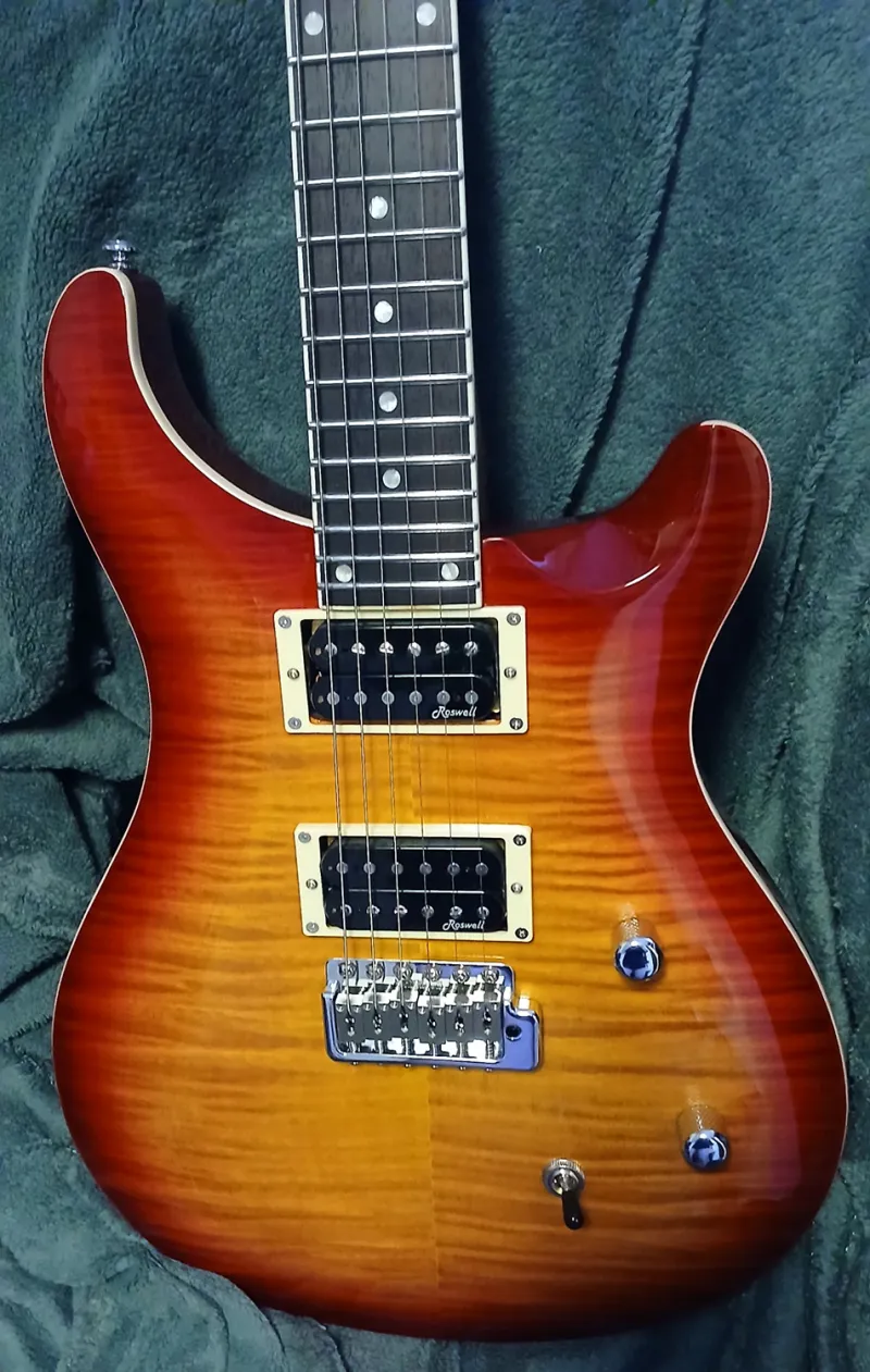 Pár hónapos szobagitár. 2025-ös gyártás. Paradise Flame színben.