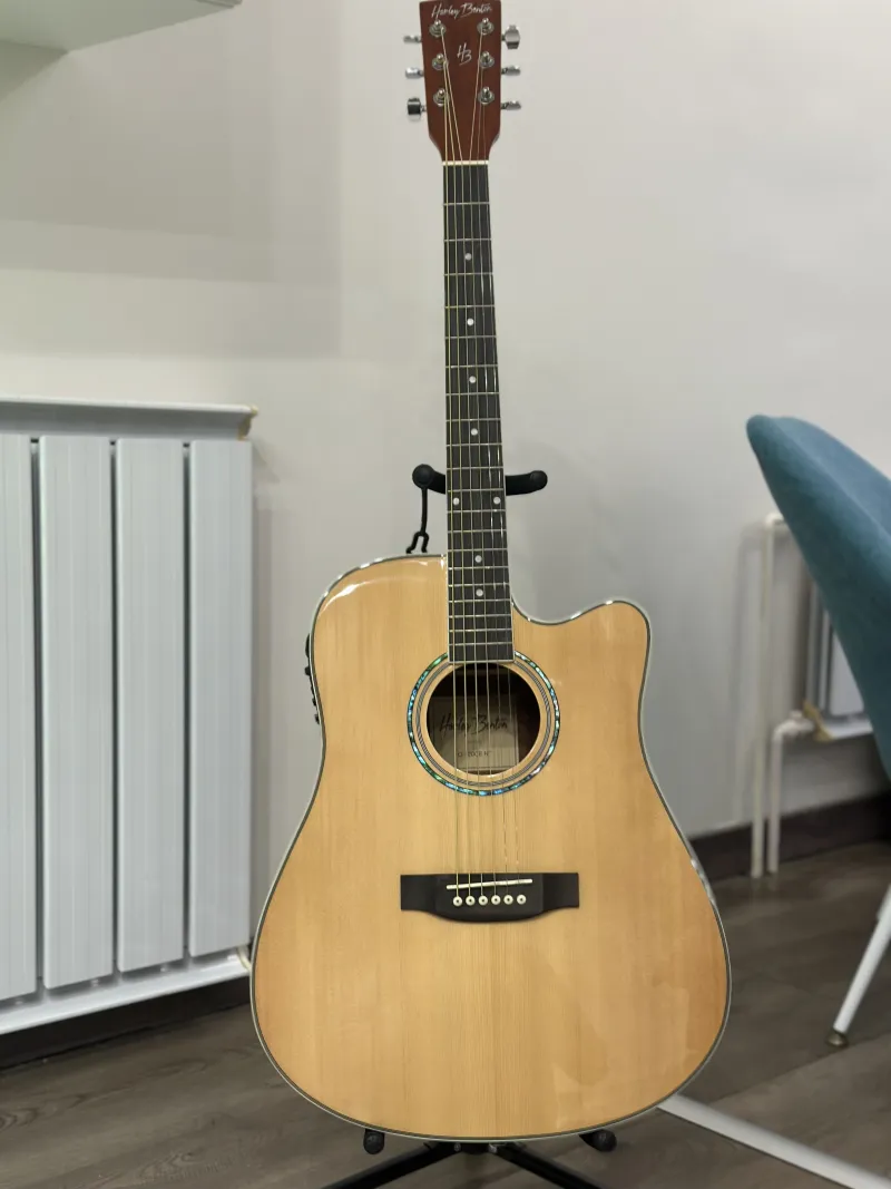 Eladó a képen látható Harley-Benton elektro akusztikus gitár. Jóformán bolti állapotú, hibátlan gitár. Korrekt hangja van mind akusztikusan mind vonalból.
