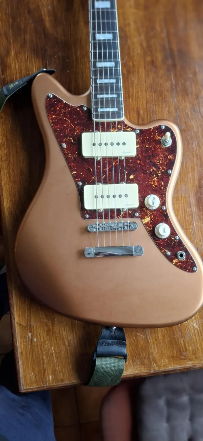 Eladásra kínálom szeretett Jazzmasterem. Ez a HB-nek egy limitált darabja, a 25. évfordulójukra gyártották, így már sehol nem lehet kapni egy ideje. A gitár a márkának a csúcskategóriája, pörkölt nyakkal, locking tunerrel és jobb hangszedőkkel.Állapota nagyon jó, rengeteg koncertet és stúdiózást látott, egy kisebb lenyomódás látszódik a hátán, ezt be is fotóztam. Kipróbálható Budakeszin vagy Budapesten.