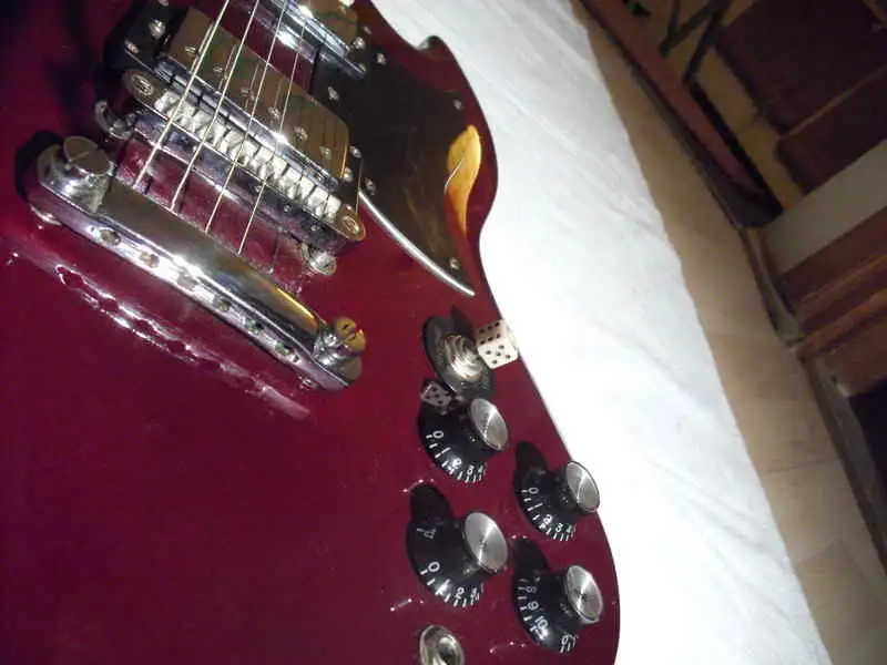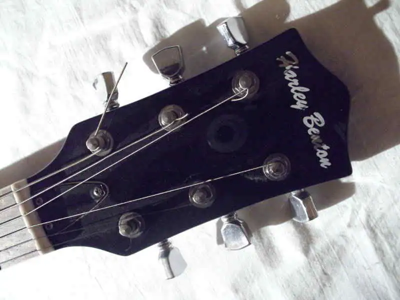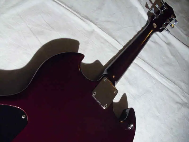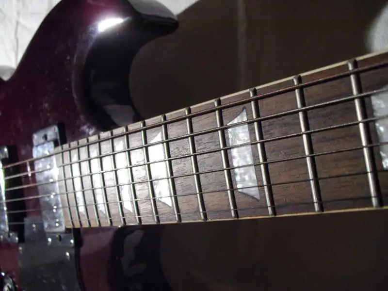 Tiene un mástil cómodo y fácil de tocar, los trastes están intactos, la electrónica funciona bien, no hay crujidos.