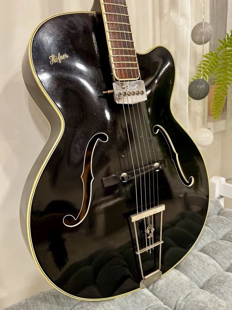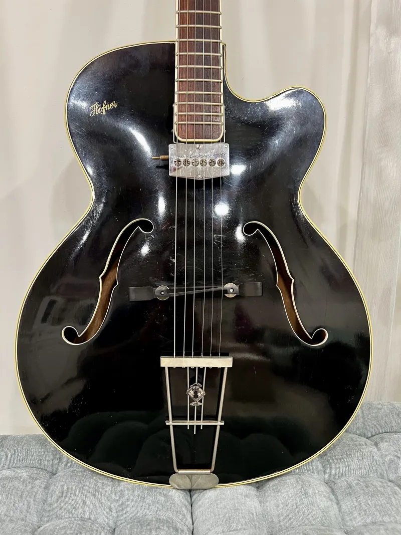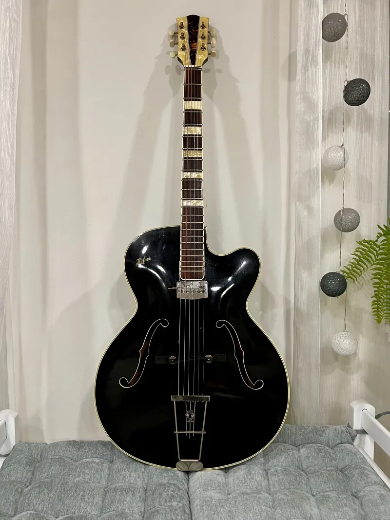 Eladóvá vált egy gyönyörű, fekete színű Höfner 458 jazz gitár, amely az 50-es évek közepe körül készült Németországban, igazi ritkaságnak számít.A test és a nyak jó állapotú, törés és repedés mentes, a fényezés pár hibától eltekintve nagyon szép (több, mint 70 éves hangszerről beszélünk :D )