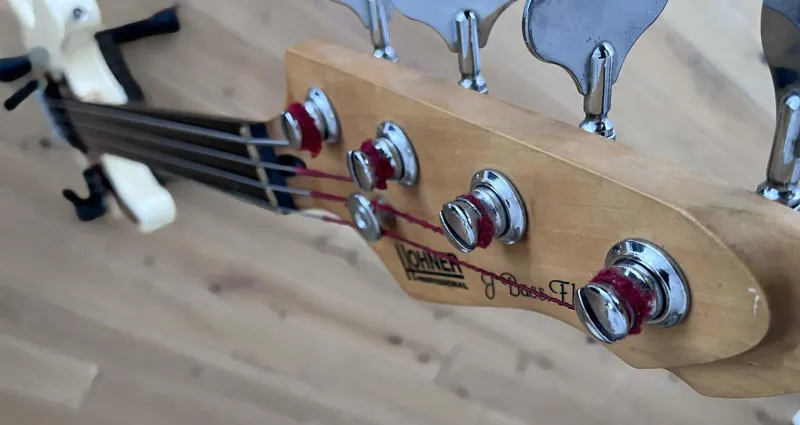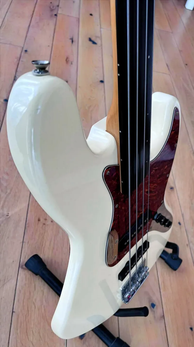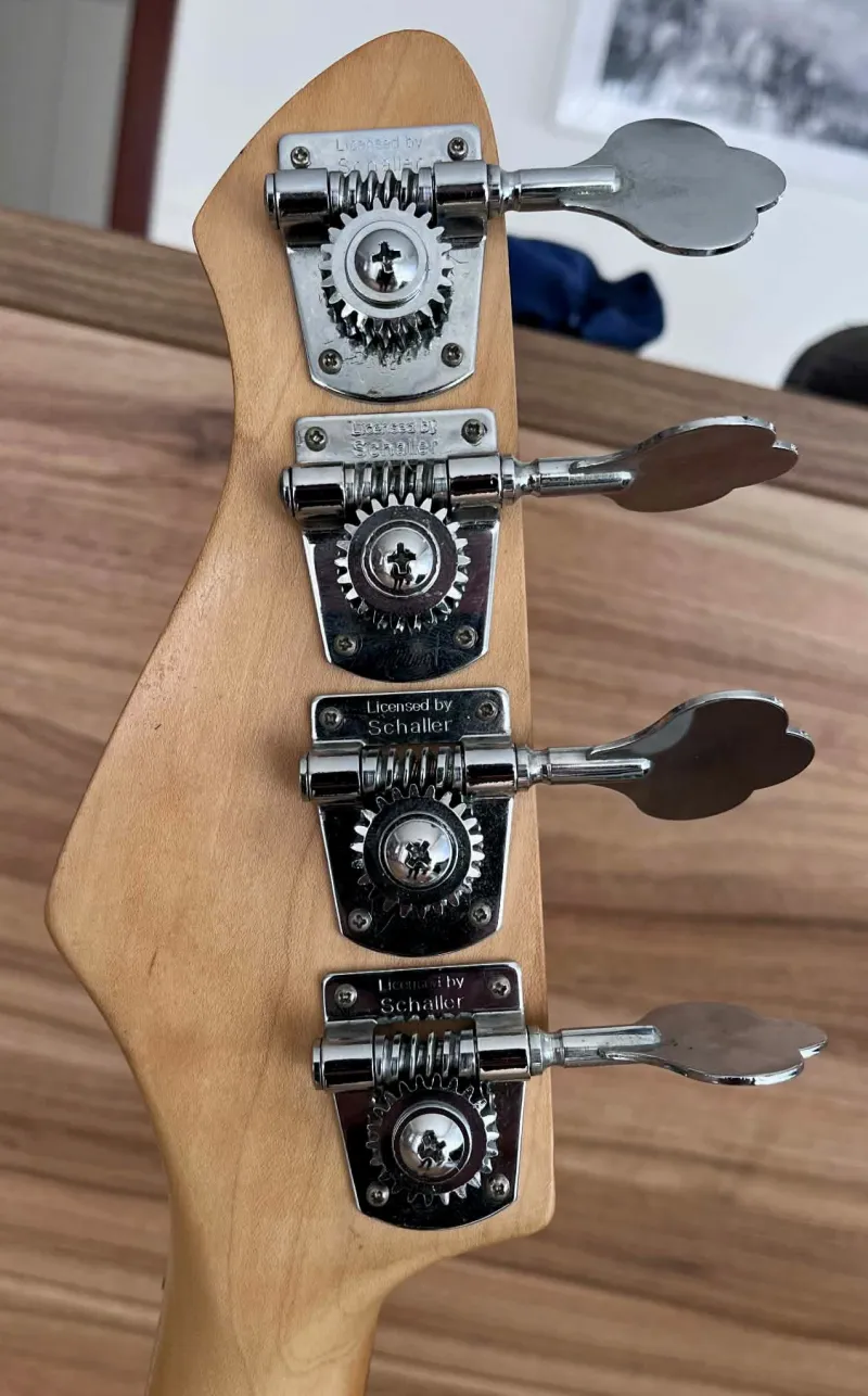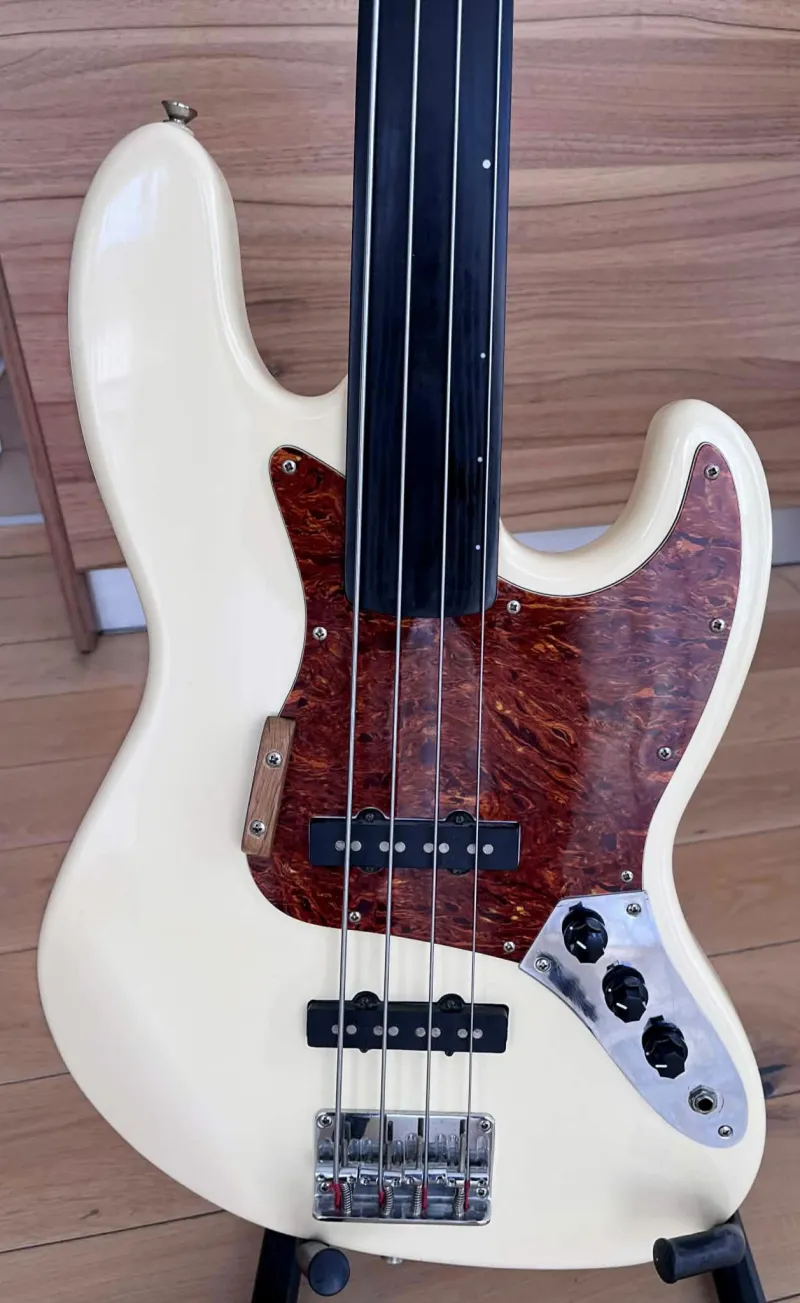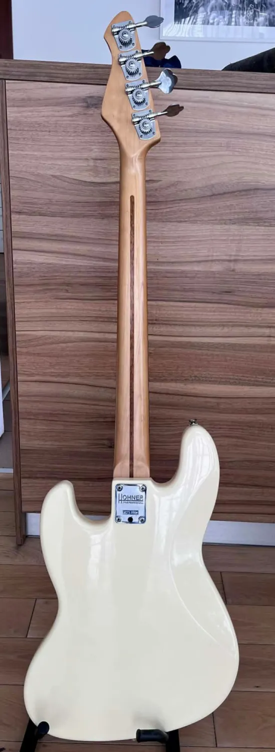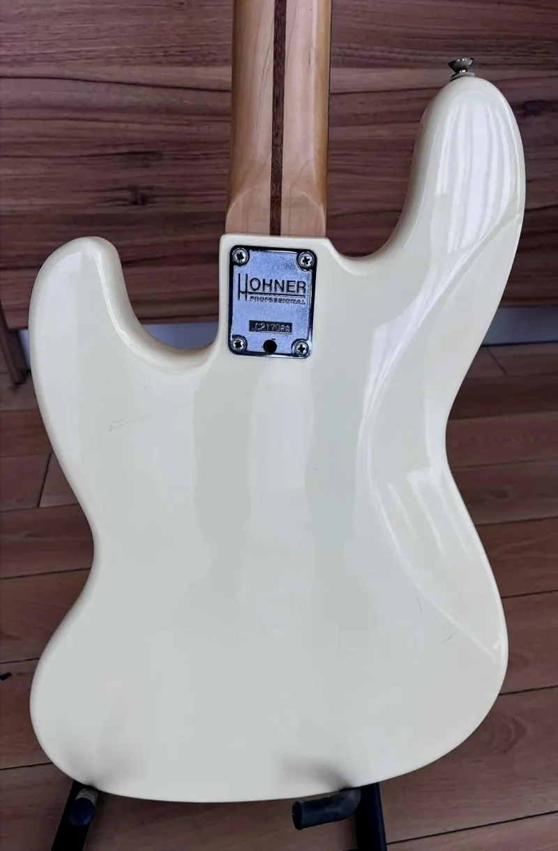 HOHNER Fretless1990-es évekbeli Hohner Professional J-Bass FL érintő nélküli, 4 húros basszusgitár nagyon jó állapotban. Látszik rajta néhány apróbb kopás, beleértve pár apró karcolást. Összességében azonban hihetetlenül tiszta, és nincsenek rajta nagyobb bemélyedések, horpadások, leverődések. A basszusgitár frissen húrozva köszörült húrokkal és professzionálisan beállítva. A nyak egyenes, a mechanika kényelmes, az ebanol fogólap pedig kiváló állapotban van. Érdekességként megjegyzem: ez már a második Hohner fretless hangszerem. Az elsőt elkerült tőlem, de mivel rendszeresen használtam vettem egy Warwick Corvette frettles hangszert, de nem voltam vele megelégedve. Azt cseréltem le erre a hangszerre, ami teljes megelégedéssel játszottam rajta kb. 10 évet. Az eladás oka, kihasználatlanság. Csere csak kézpénzre. Fix ár.