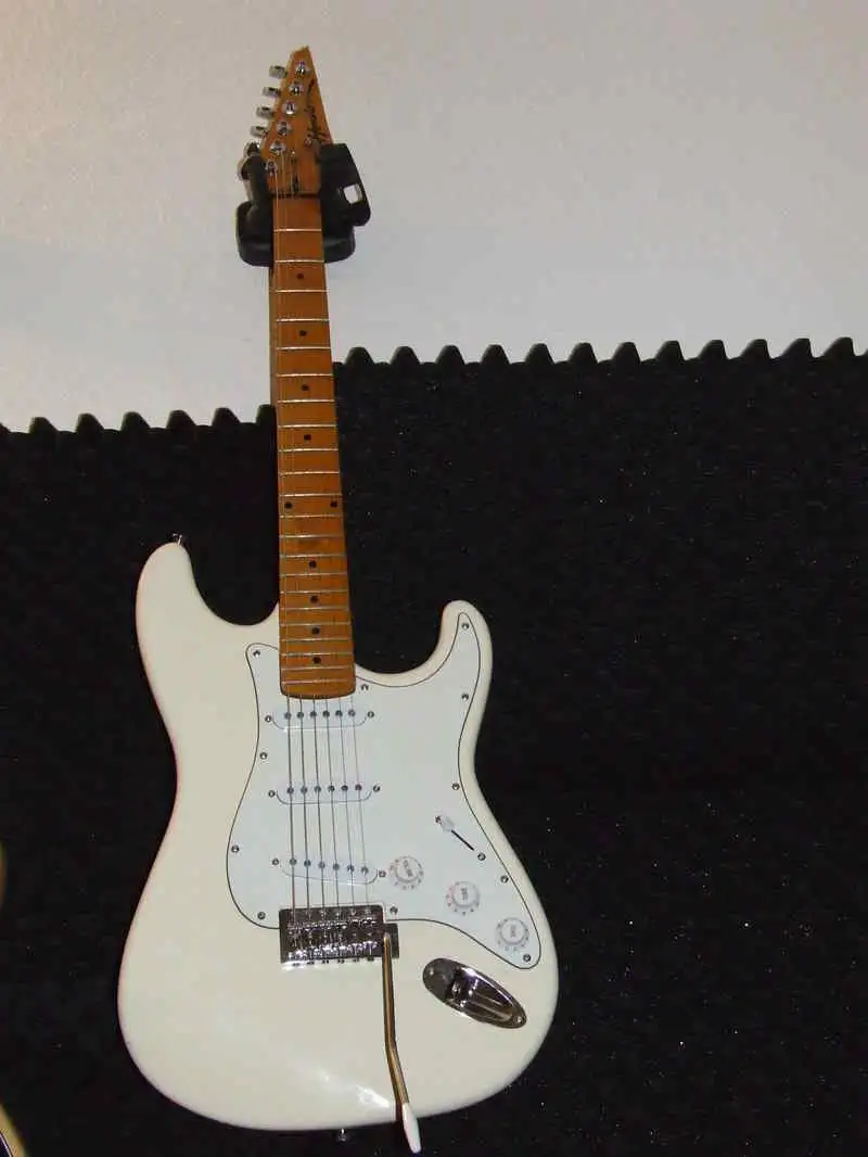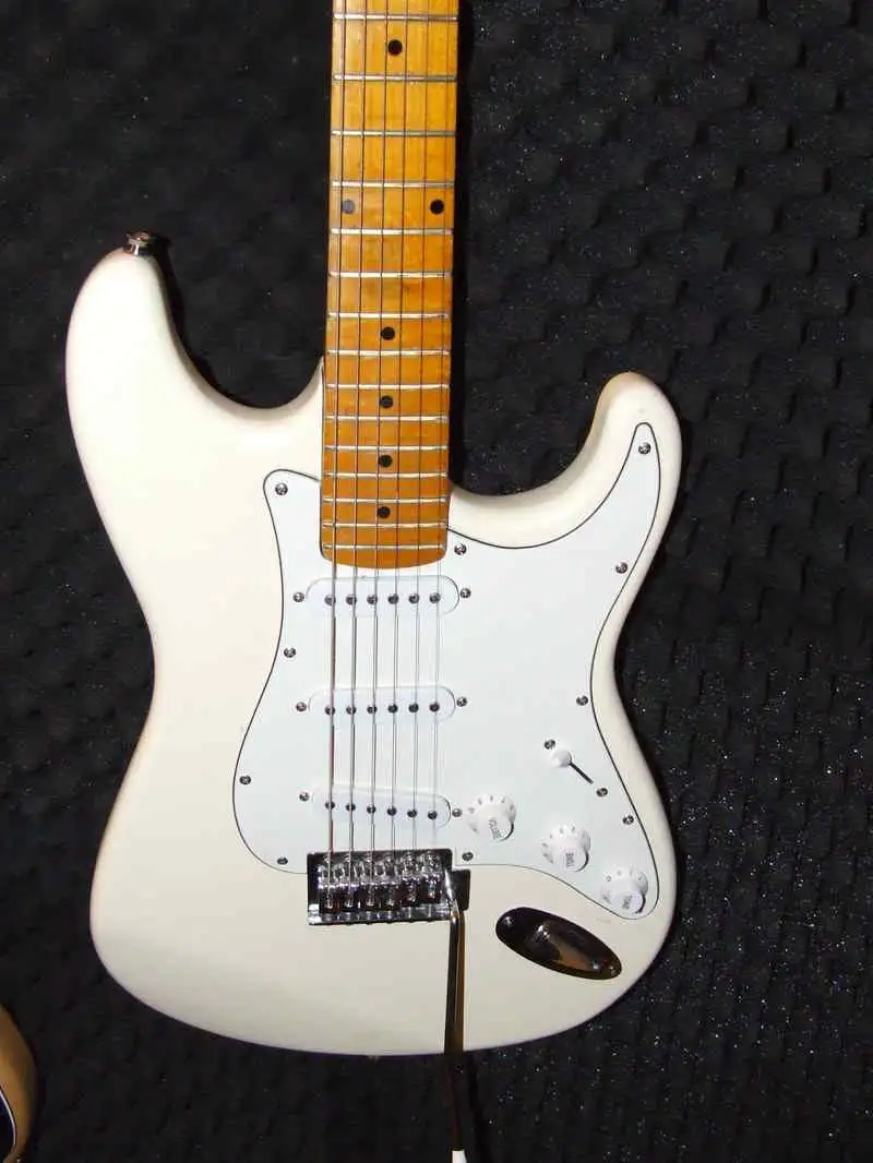 huendeskesEste Stratocaster japonés está a la venta en magnífico estado. Tiene muy pocos pequeños golpes, lo cual es de esperar dada su edad :) Tiene un mástil muy cómodo y preciso, trastes buenos, un sonido Strat maduro y auténtico... Con un juego de clavijas Kluson nuevo (con garantía).