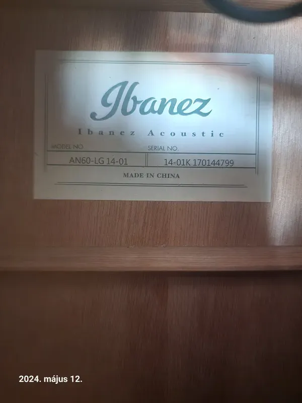 Eladó egy 7 éves Ibanez AN60-LG 14-01 típusú parlor gitár elektronika nélkül.Tömör fenyő fedlap, mahagóni nyak, hát és oldal.