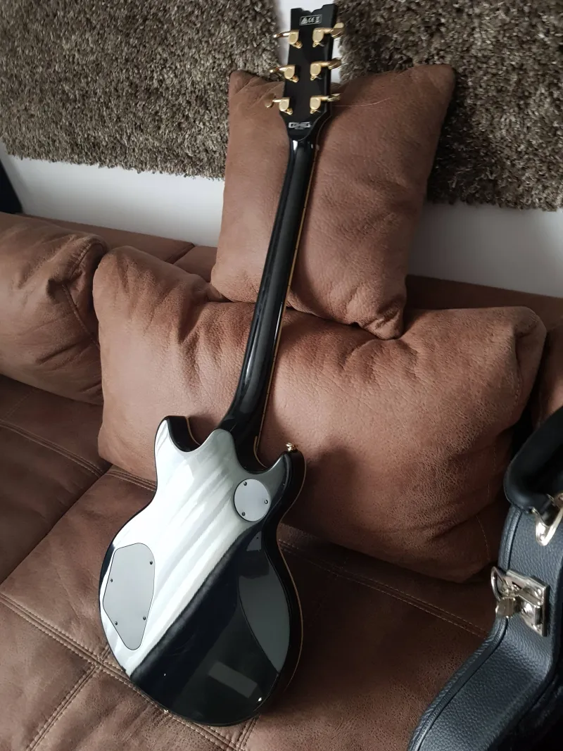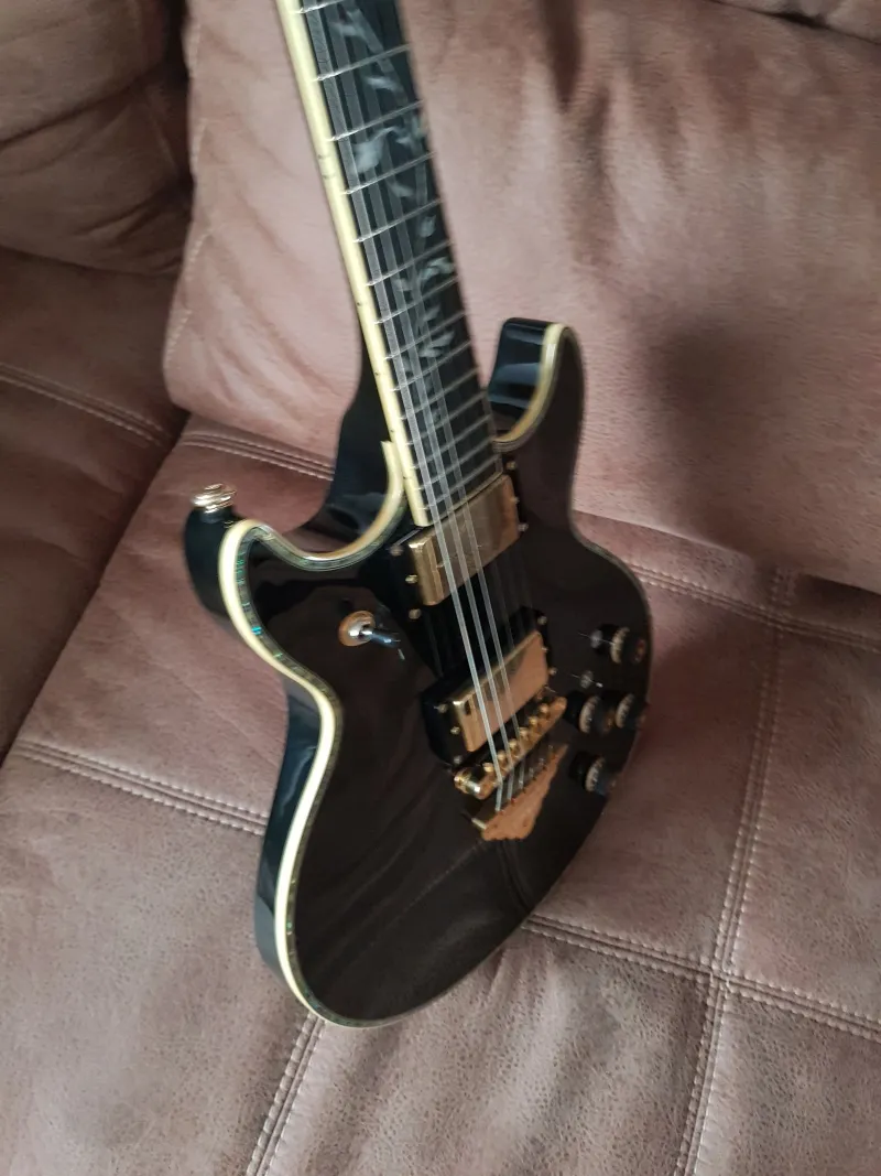 Mahagóni test, ragasztott juhar nyak, ébenfa fogólap, 22 medium érintő, menzúra: 628 mm, arany szerelékek, ART-1 húrláb, Quik Change húrtartó, Super 80 ``V-Style Finger`` hangszedők, 3 állású kapcsoló, hangerő, hangszín, tartozék hordtáska, fekete kivitelCsak gyakorlásra használtam viszonylag rövid ideig, a használatból fakadóan kisebb mikrokarcolások vannak rajta.