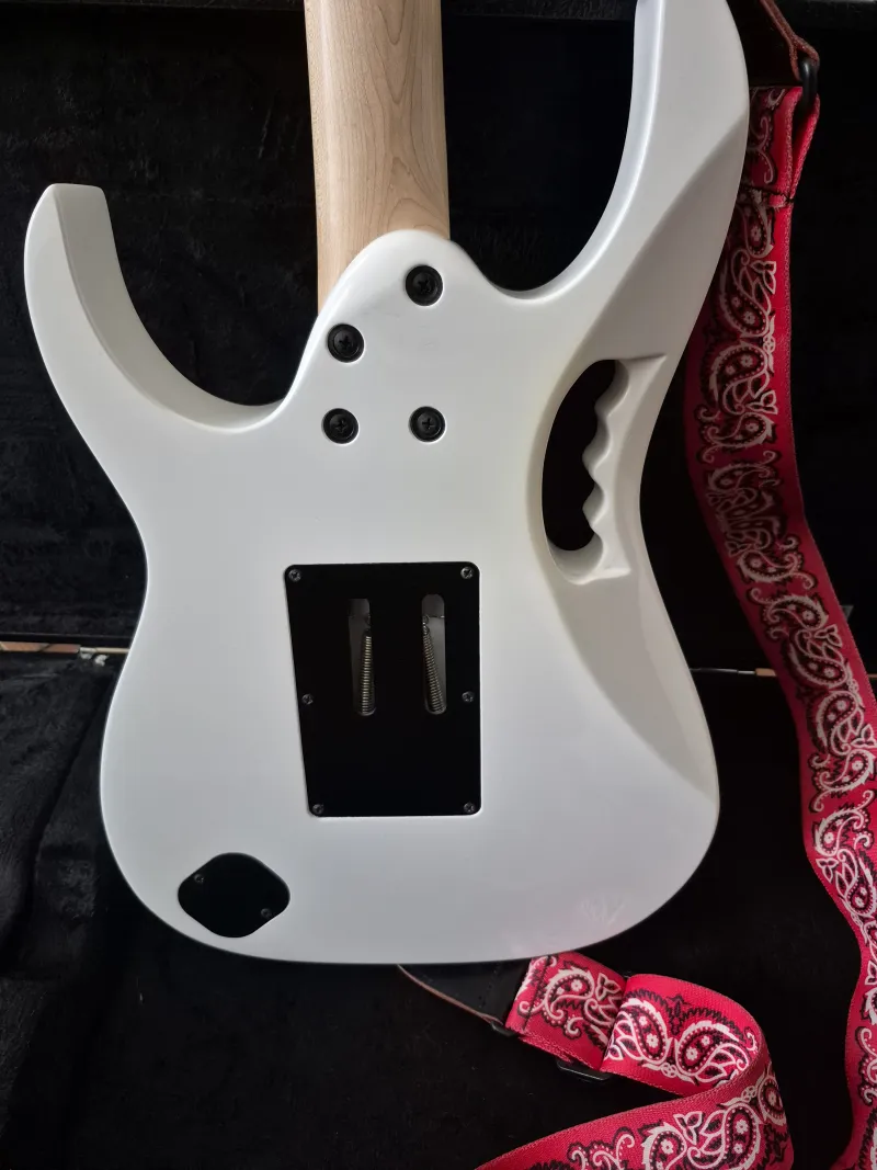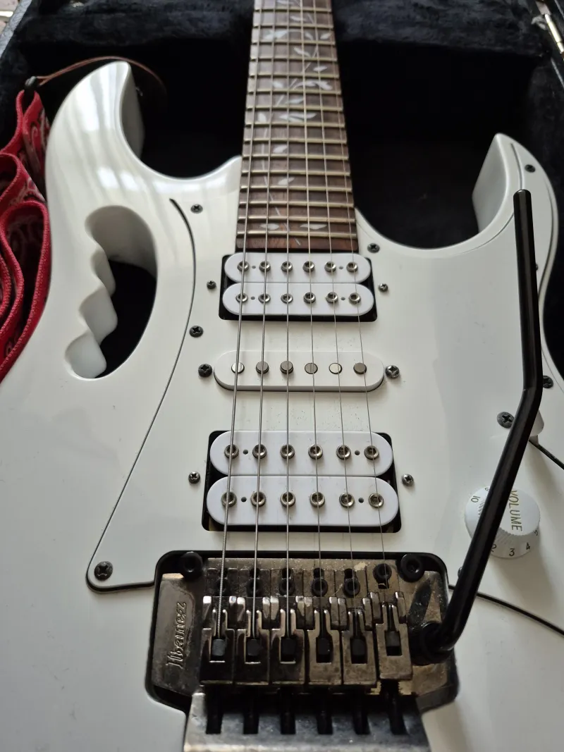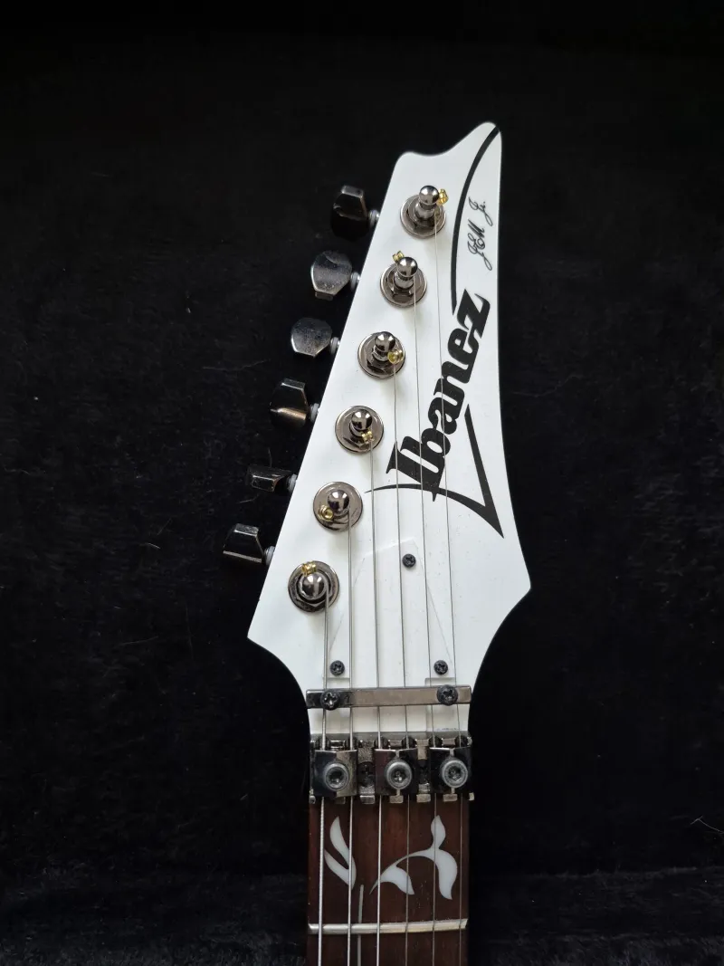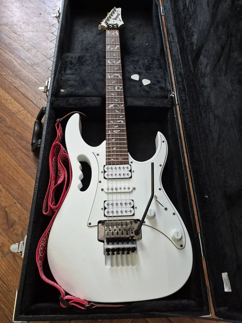 Eladóvá vált kihasználatlanság miatt a Ibanez JEM-JR WH gitárom, a legendás Steve Vai modell megfizethetőbb változata. 😏 Színpadon is használt de kiváló állapotban van, ikonikus ˝monkey grip˝ fogantyúval és Floyd Rose típusú tremolóval, igazi shred-hangulatot idézve. Nem szívesen postázom, de kérésre Szeged-Budapest vonalon vonattal el tudom vinni. Képen látható keménytokkal együtt adom.