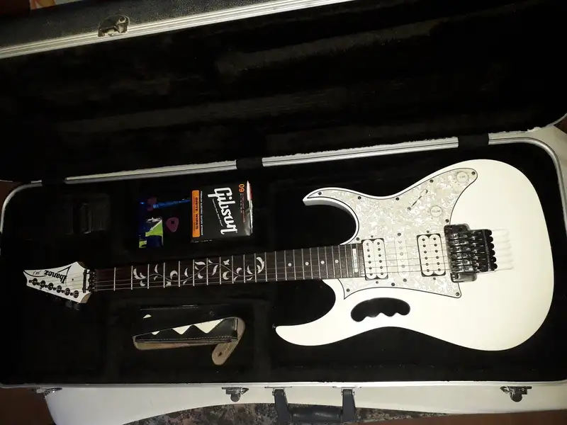 Eladó szinte karc mentes Ibanez Jem555. Made in Indonesia 2013 .Ha kell Washburn tokkal is. Gyárilag Usa Dimarzio pick-up okkal.Reseña relacionada