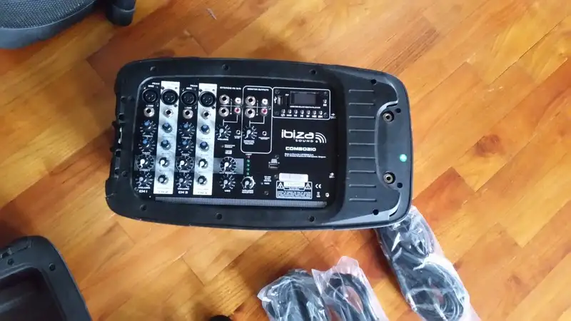 Ibiza Combo 210 hordozható PA hangfalpár - állványokkal, mikrofonnal, mikrofonkábellel.