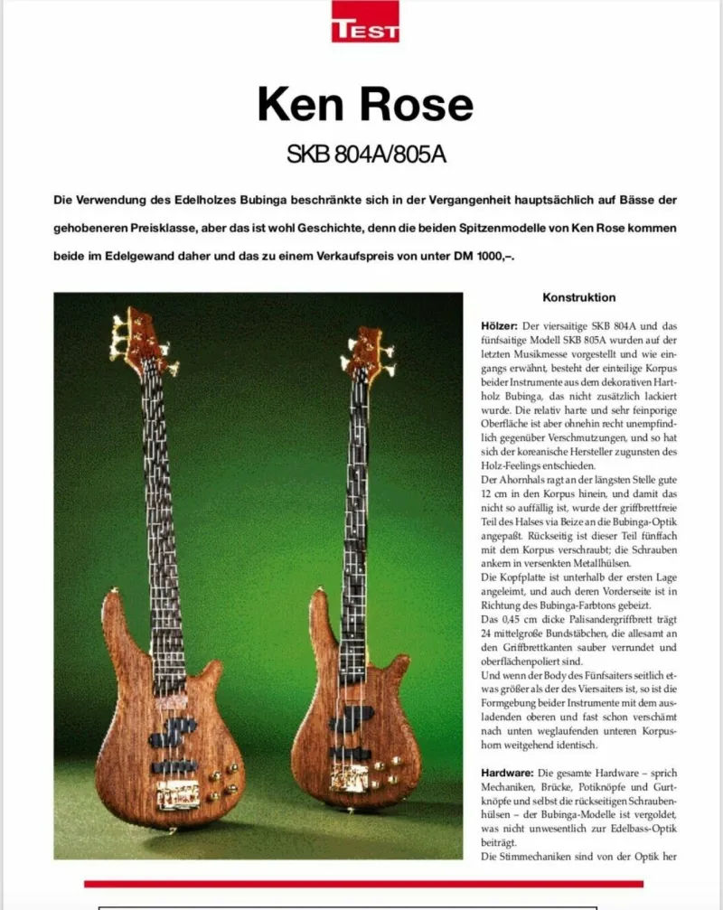 Ez a basszusgitár a Ken Rose csúcsmodellje volt, németül tudóknak érdemes elolvasni a mellékelt tesztet.