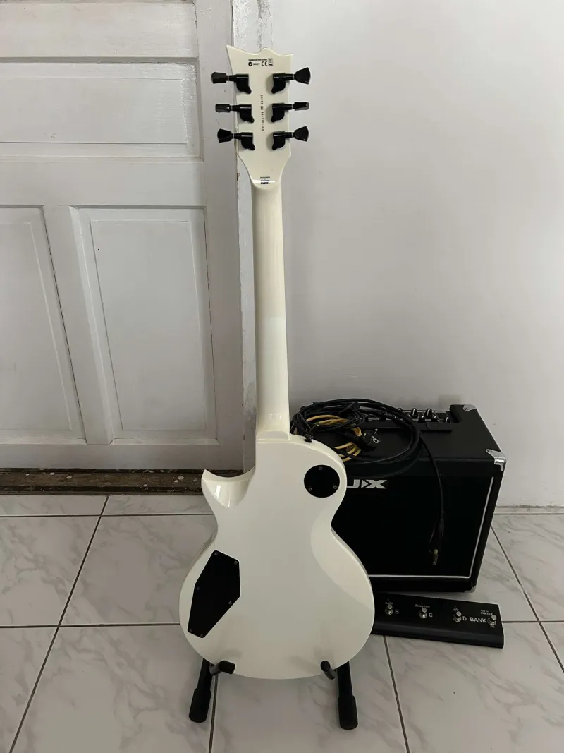 Eladó egy ESP LTD EC-256 és NUX MIGHTY30SE kombó lábkapcsolóvalA hangszer felezhető humbucker hangszedőkkel van ellátva, minden gyári benne. A nyakállító pálca elől hiányzik a takaró. Jelenleg drop B-re van hangolva és beállítva, de egy húrcsere ráfér.