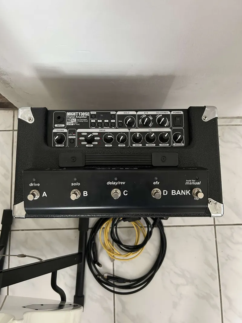 Az erősítő egy sokoldalú, kezdőbarát cucc, beépített hangolóval. Jól szól, lábkapcsolót és szükséges kábeleket is adok hozzá!