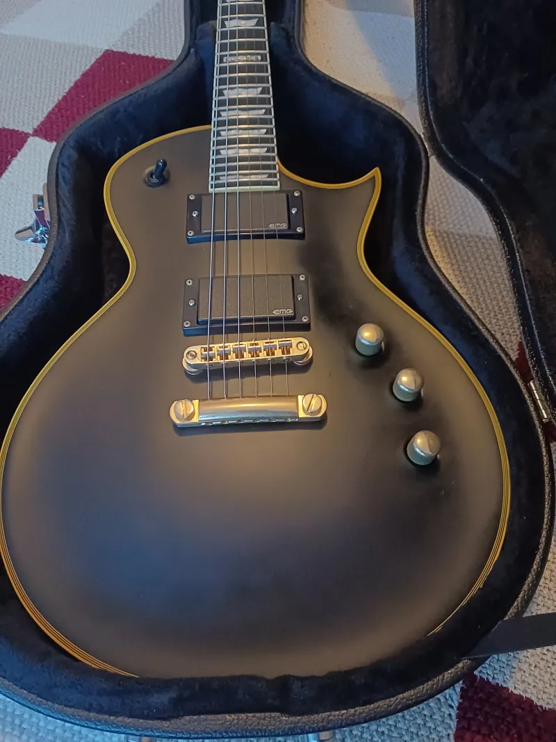 Eladó sorba került LTD EC-1000 gitár.A matt fekete finish és az arany hardver igazán elegáns megjelenést kölcsönöz neki, az aktív EMG pickupok pedig lehengerlő hangzást biztosítanak - legyen szó stúdióról vagy élő játékról.Állapot: Használt, néhány kisebb leverődés van rajta, de műszakilag hibátlan.