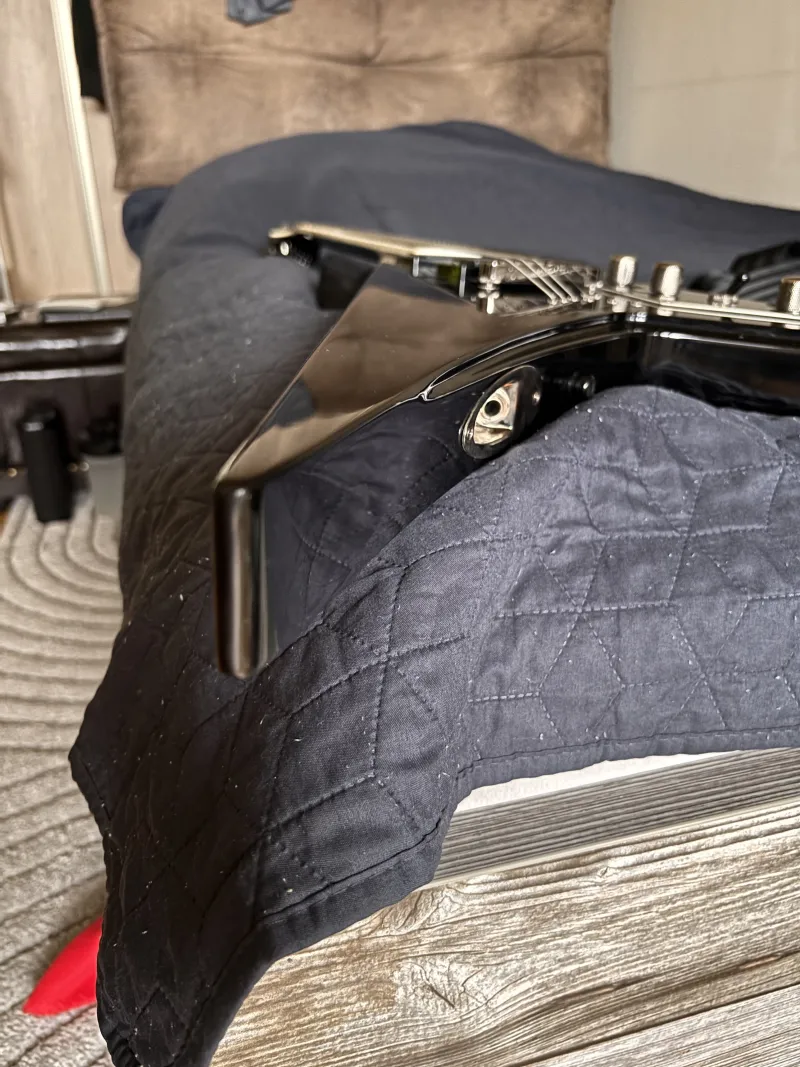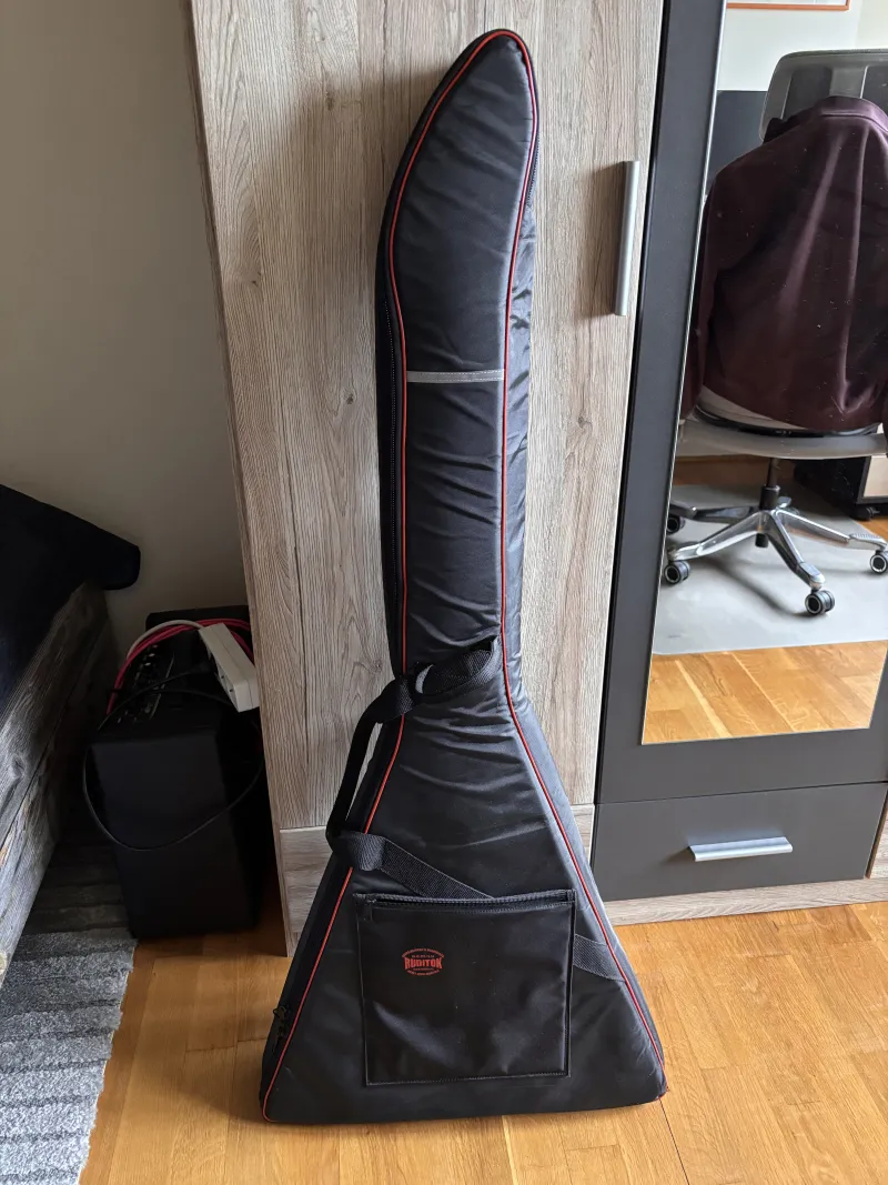 Egyedileg ehhez a gitárhoz készített magas minőségű puhatokkal kínálom eladásra a hangszert, valamint schaller tpusú straplockhoz passzoló hevedertartó gombokkal.