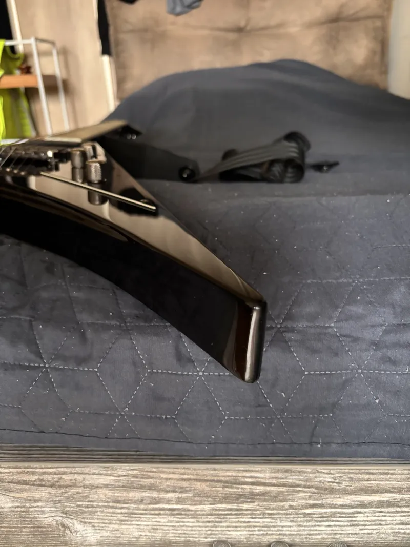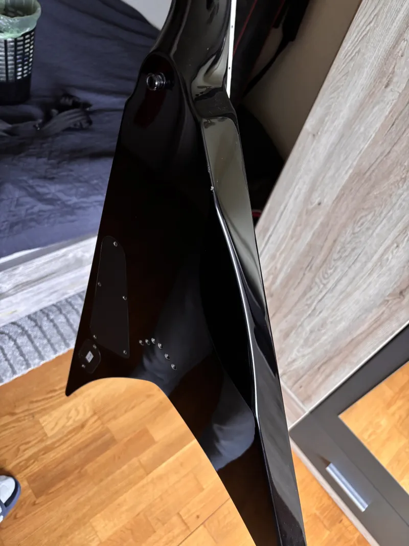 A gitár szinte hibátlan állapotú, szarvai is sérülésmentesek. Egy ponton látható apró lakkleverődés, ez fotózva van.