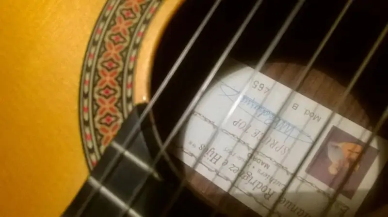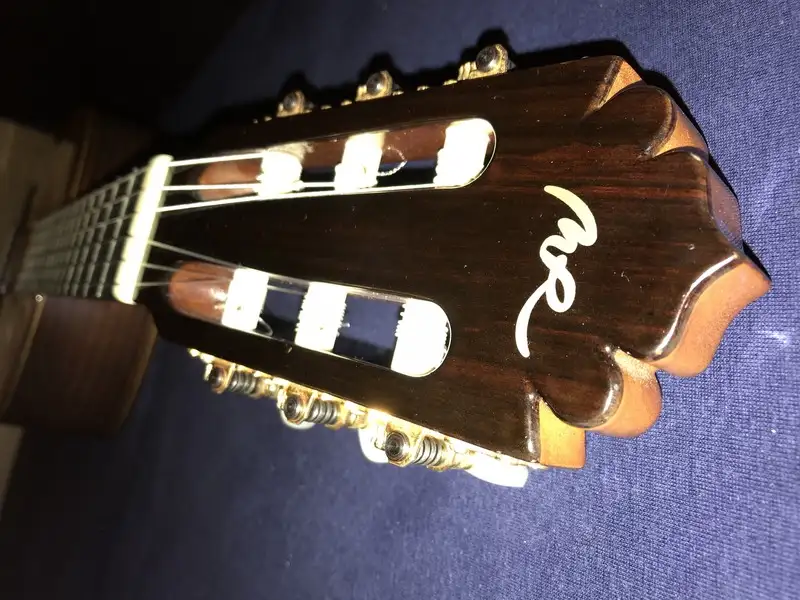 huendeskes Guitarra clásica Manuel Rodriguez e Hijos B Spruce Top casi sin rasguños ¡Perfecta para principiantes e intermedios! Tapa de abeto macizo Aros y fondo de palisandro indio laminado Mástil de cedro de Honduras, con ébano Puente: Palosanto de la India Diapasón de ébano Cuerdas Savarez Ancho de la cejuela: 52 mm Longitud de escala: 650 mm 19 trastes Cejuela y selleta de hueso Clavijero dorado estilo Manuel Color natural Hecho en España ¡Con funda blanda gruesa Warwick!