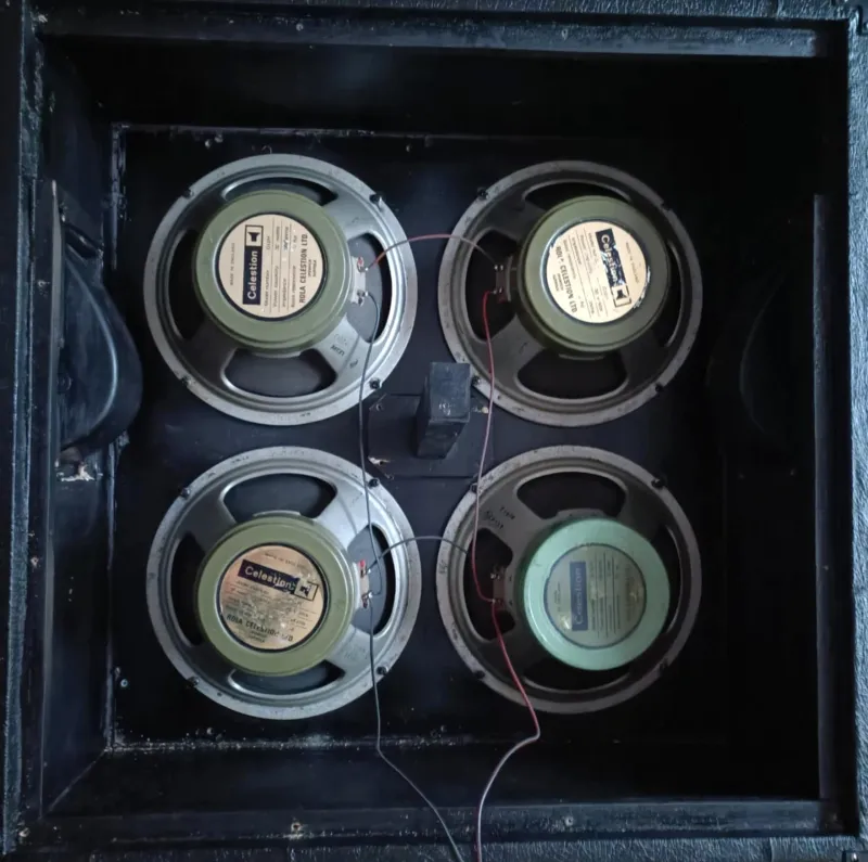 Eladó a képen látható 1973-as G12H-30 Greenback hangszórós Marshall 1960B gitárláda.Reseña relacionada