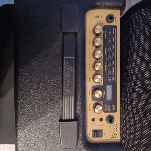 Eladóvá vált Marshall 25 wattos gitárkombóm.Minimális esztétikai hibával rendelkezik,a hangjával nincs probléma.A gitárkombóról: