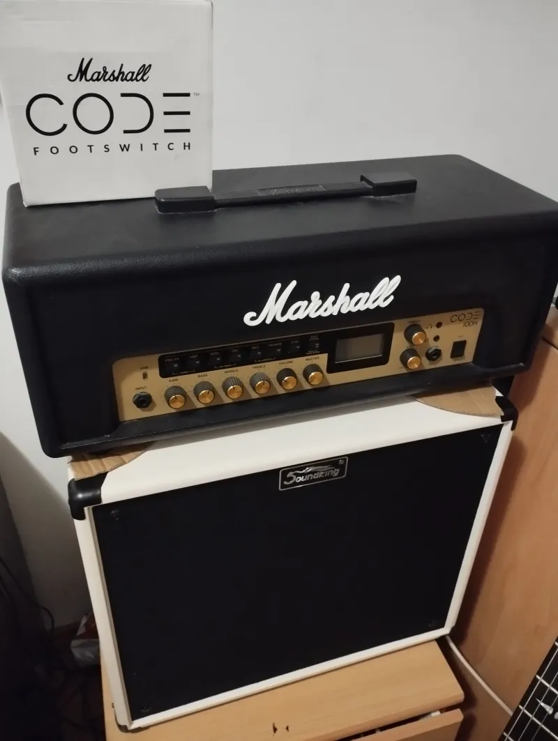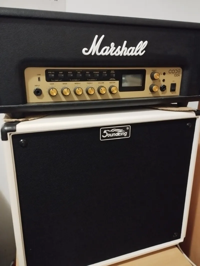 Eladó a címben említett Marshall code 100 fej + lábkacsoló + egy soundking láda lehetőség szerint egyben..A ládában cserélve lett a hangszóró egy szélessávú turbosound hangszóróra.
