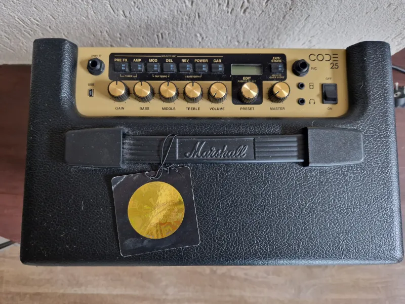Eladó egy pár órát használt 25W-os Marshall CODE 25 modellező gitárkombó.7 Pre-FX effekt(compressor, 2 overdrive, distortion, 2 autowah, pitch shifter)