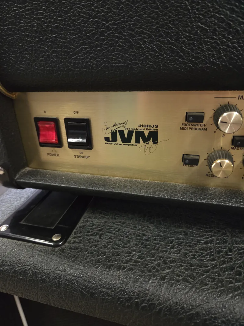 Eladó a képen látható Marshall JVM410HJS Satriani fej. Az egyik legsokoldalúbb Marshall fej, nem zengek ódákat róla, a neten minden információ megtalálható vele kapcsolatban. Limitált darabszámban gyártották, így már nehezen hozzá férhető. 4 csatorna, csatornánként 3 gain. Teljes MIDI vezérlés. 2 effekt loop. Nem összekeverendő a JVM410H-val, mert teljesen máshogyan szól, zengető helyett zajzár van, és ami lényeges, fojtó trafó is van benne. A hangzás Satrianival együtt lett kifejlesztve, igazi hard rock Marshall hangzás. Az erősítő tökéletes állapotban van, elektronikailag, csövileg, tip-top, csak bedugod a gitárt, és dörrenik. Természetesen jár vele a pedálja, és egy szuper stabil konténer, amit hozzá gyártattam. Ez a cucc örök életre szól, én sokat dilemmáztam, hogy megtartsam e, ( a szívem hasad meg) de aki tudja, hogy egy házfelújítás hogyan zabálja a pénzt, az megérti miért teszem fel ide.Épp ezért, csere, alku kizárt, csak készpénz, nem mindenáron eladó, akkor inkább marad. A súly, és a cucc értéke miatt a személyes átvétel preferált.