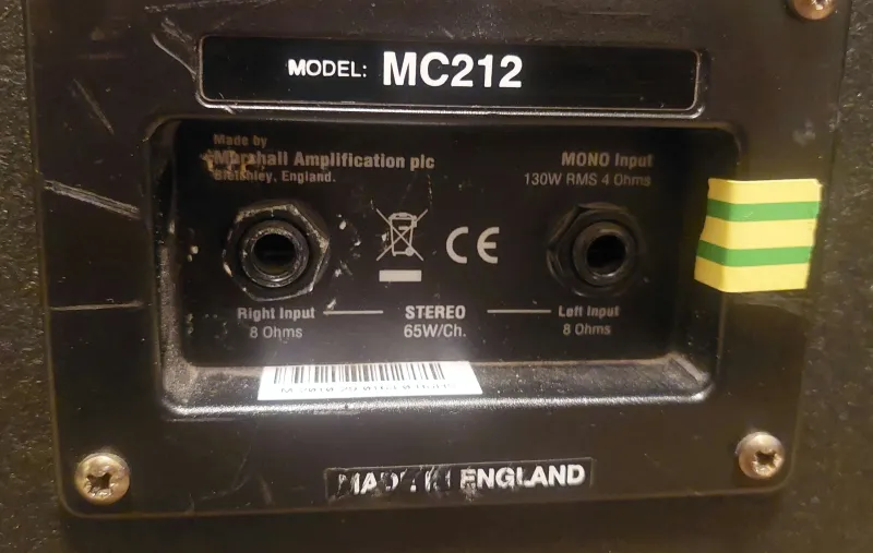 Eladó Marshall MC212 gitárláda, mono és stereo opcióval, monoban 4ohm, stereoban 2x8ohm.Angol gyártmány.