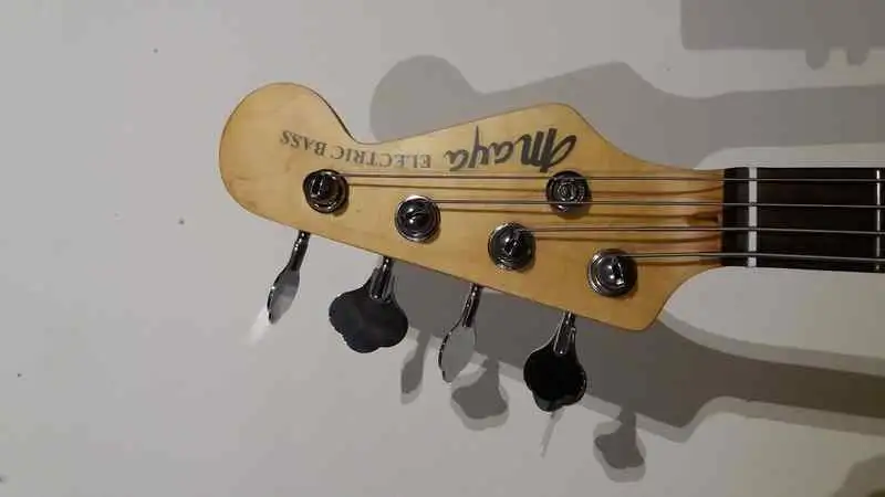 huendeskes Bajo con inscripción 'Maya electric bass'. En el estado que se ve en las fotos, no es un instrumento nuevo. Con cuerdas nuevas, su electrónica necesita reparación y requiere ajuste. Garantía, cambio, devolución, etc. excluidos.